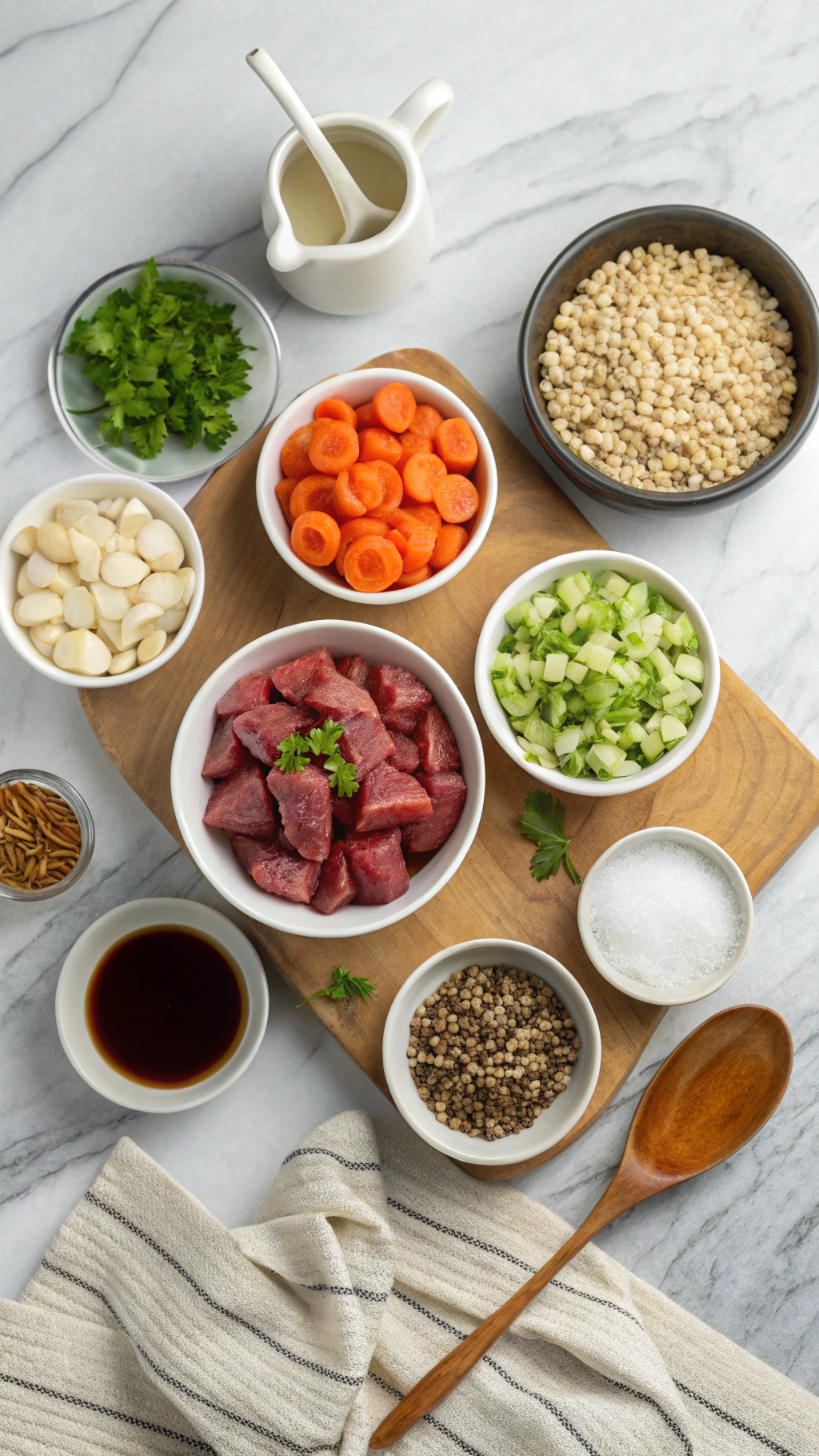 Turn off the heat and stir in chopped parsley and a small squeeze of lemon juice. Taste again and adjust salt, pepper, or soy sauce. Ladle the Beef Barley Soup Recipe into bowls while hot. Add extra parsley on top if you like a fresh, green finish.