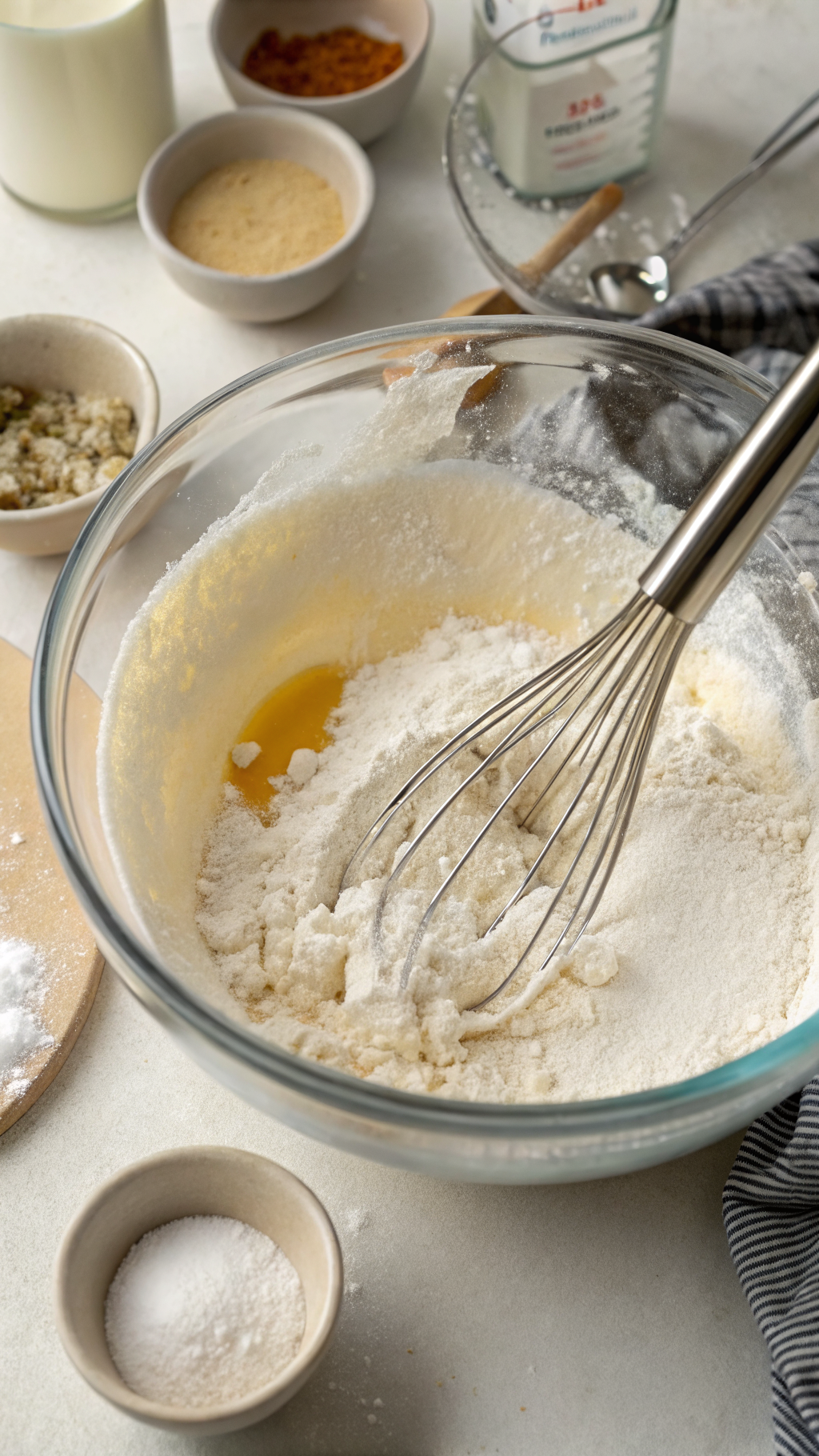 - Gradually add the dry ingredients to the wet ingredients, mixing just until combined.