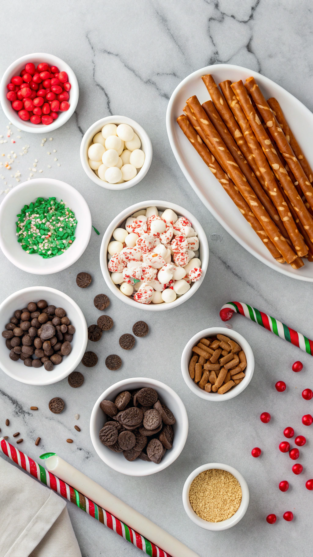 - Holiday toppings: Christmas sprinkles, crushed candy canes, mini marshmallows, toffee bits, mini M&M-style candies, chopped pistachios or almonds, shredded coconut, or flaky salt.