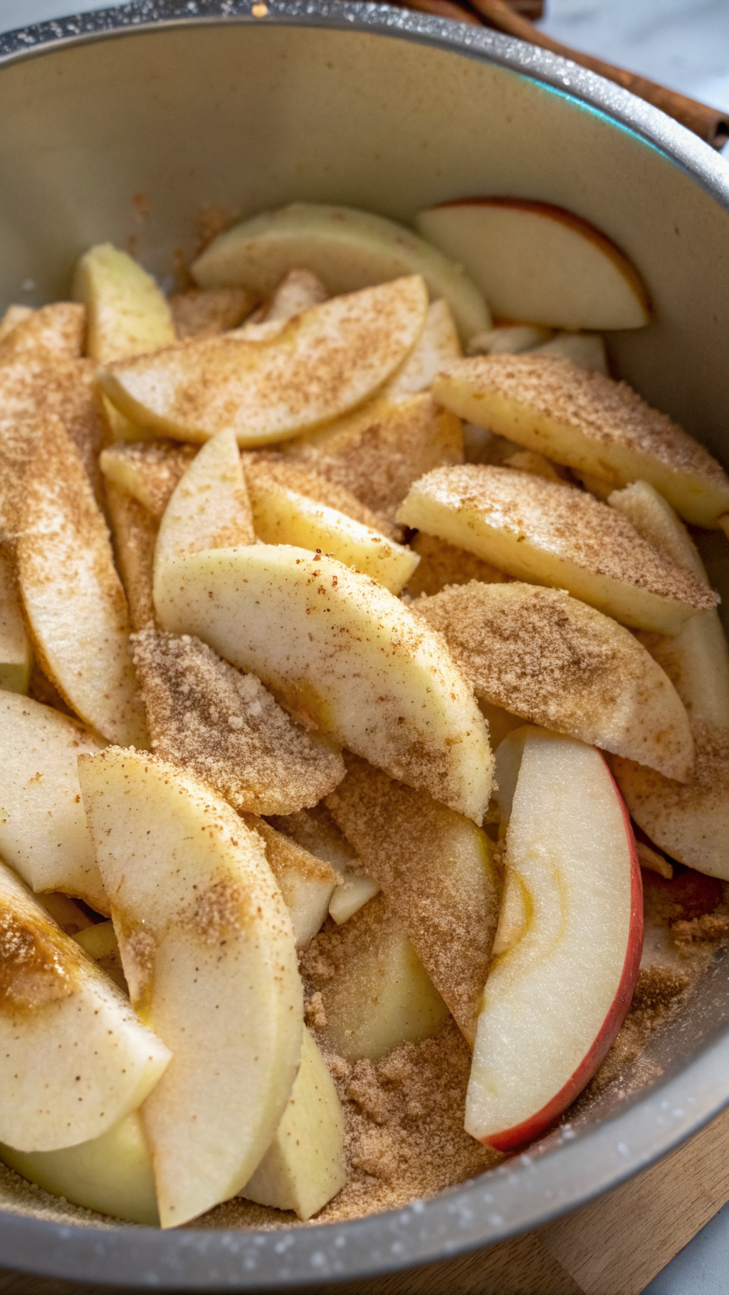 I sometimes add 2 to 3 tablespoons of caramel sauce to the apples for a caramel apple pie version that tastes extra rich. A handful of finely chopped toasted pecans or walnuts mixed into the filling adds crunch and a nutty flavor. If you like more spice, you can add a pinch of ground cloves or cardamom for a deeper, bakery-style taste.