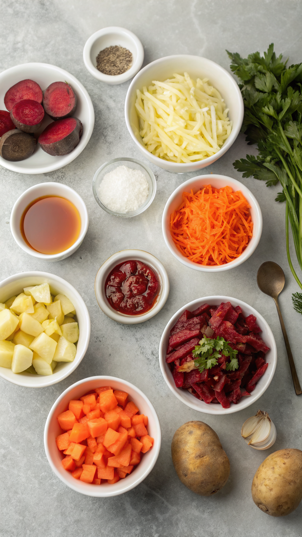 Serve this Classic Borscht Recipe with thick slices of rye bread or crusty sourdough so you can soak up every last bit of broth. A simple cucumber and tomato salad with a light vinaigrette adds freshness and crunch. You can also serve boiled or mashed potatoes on the side if you want a heartier meal. For a cozy touch, add a side of warm garlic bread or a small plate of pickles for contrast.