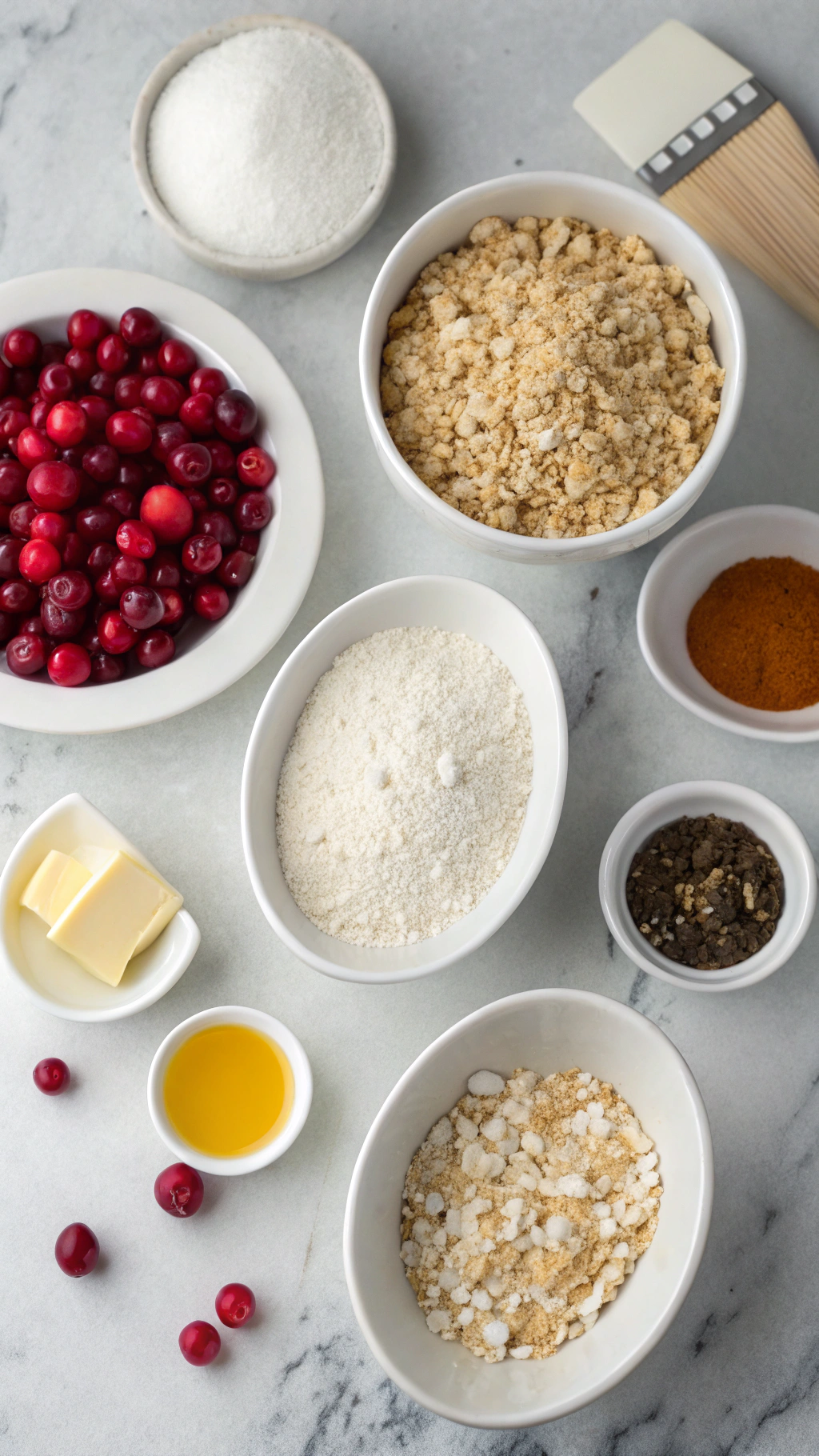 You mix one dough for both the base and the crumb topping, which saves time and dishes. Melted butter brings the oat crumble together fast and packs in that toasty bakery flavor. The cranberry filling uses pantry sugar, cornstarch, and orange for brightness, no stovetop needed.