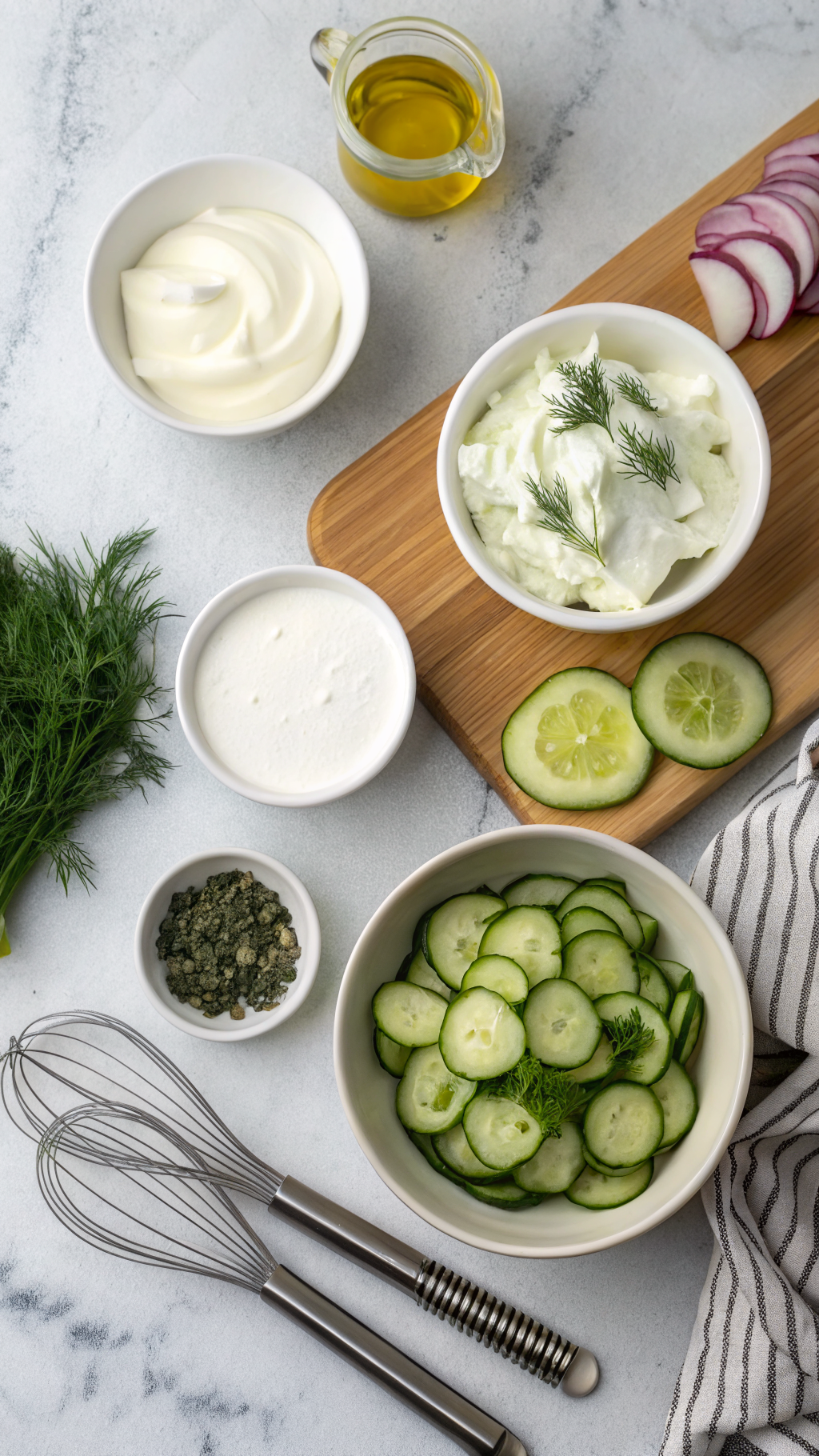 Let the cucumbers sit for 10 to 15 minutes so they release some water. After that, gently squeeze handfuls of cucumbers or press them lightly with a clean kitchen towel. This step keeps the Creamy Cucumber Salad Recipe from turning watery later.