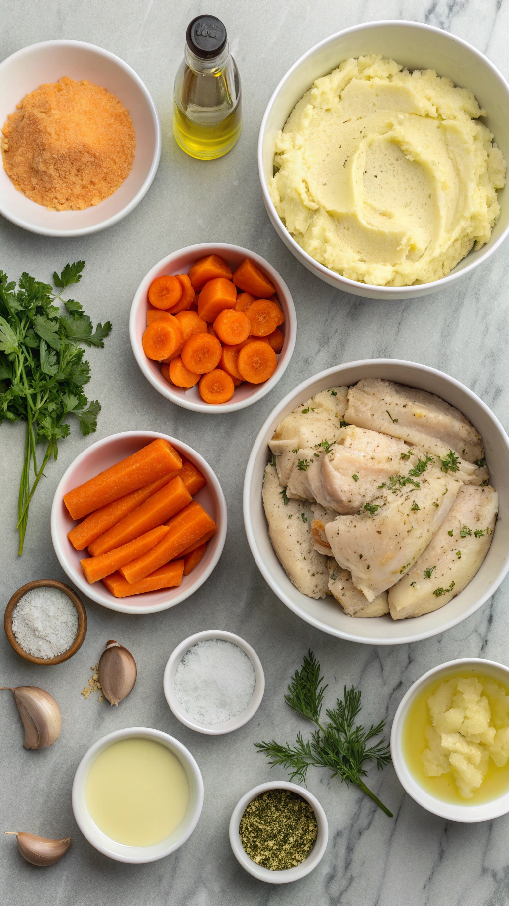 For a lighter version, I use half and half in the sauce and Greek yogurt in the potatoes, then keep the portion of mashed potatoes a bit smaller. I also tried a version with a touch of smoked paprika in the sauce and it gave a cozy, almost rustic flavor that worked really well with the sweet carrots. When I feel extra, I stir a handful of shredded cheddar into the mashed potatoes for a cheesy twist.