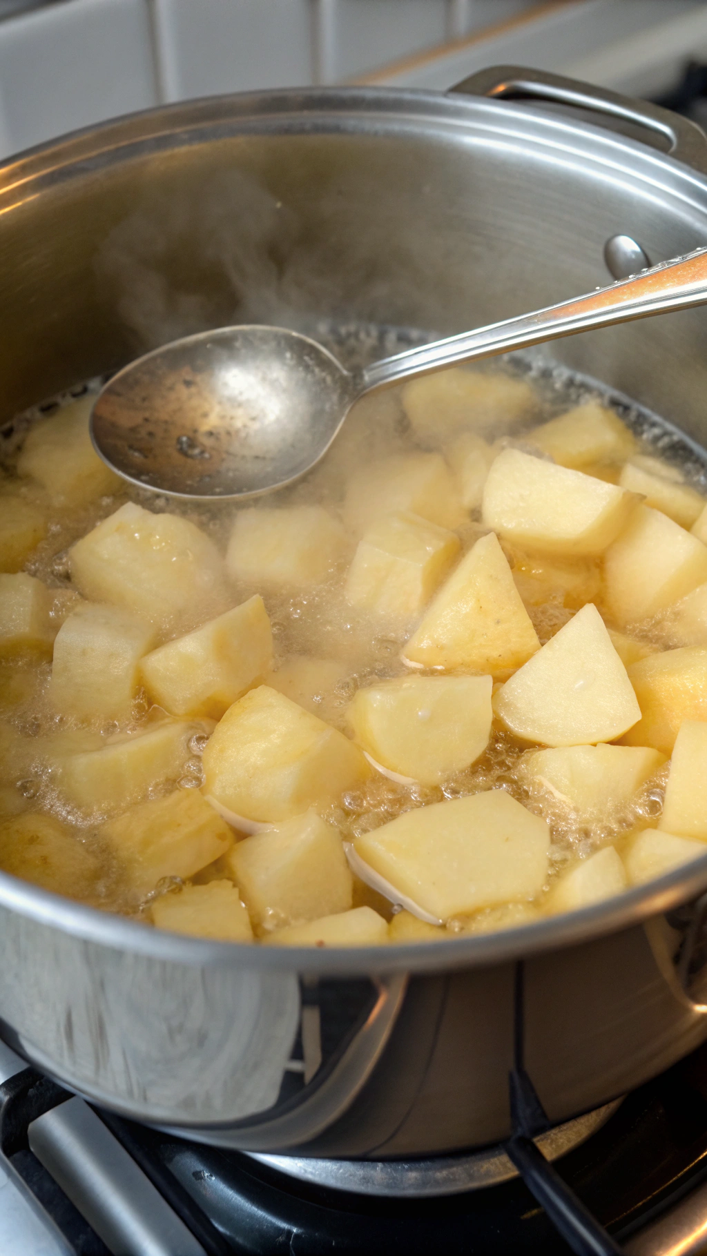 - Place the peeled and cubed potatoes in a large pot, cover with cold water, and add a pinch of salt.