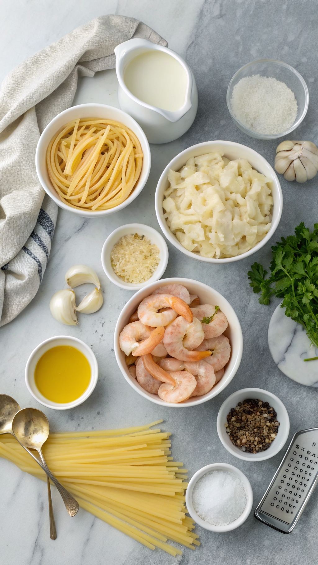 Use jarred minced garlic if you feel tired, but reduce the amount slightly since it tastes stronger. Use good-quality Parmesan from a wedge for the smoothest Creamy Shrimp Pasta Recipe sauce. Any neutral olive oil works; save fancy extra-virgin for drizzling at the table.
