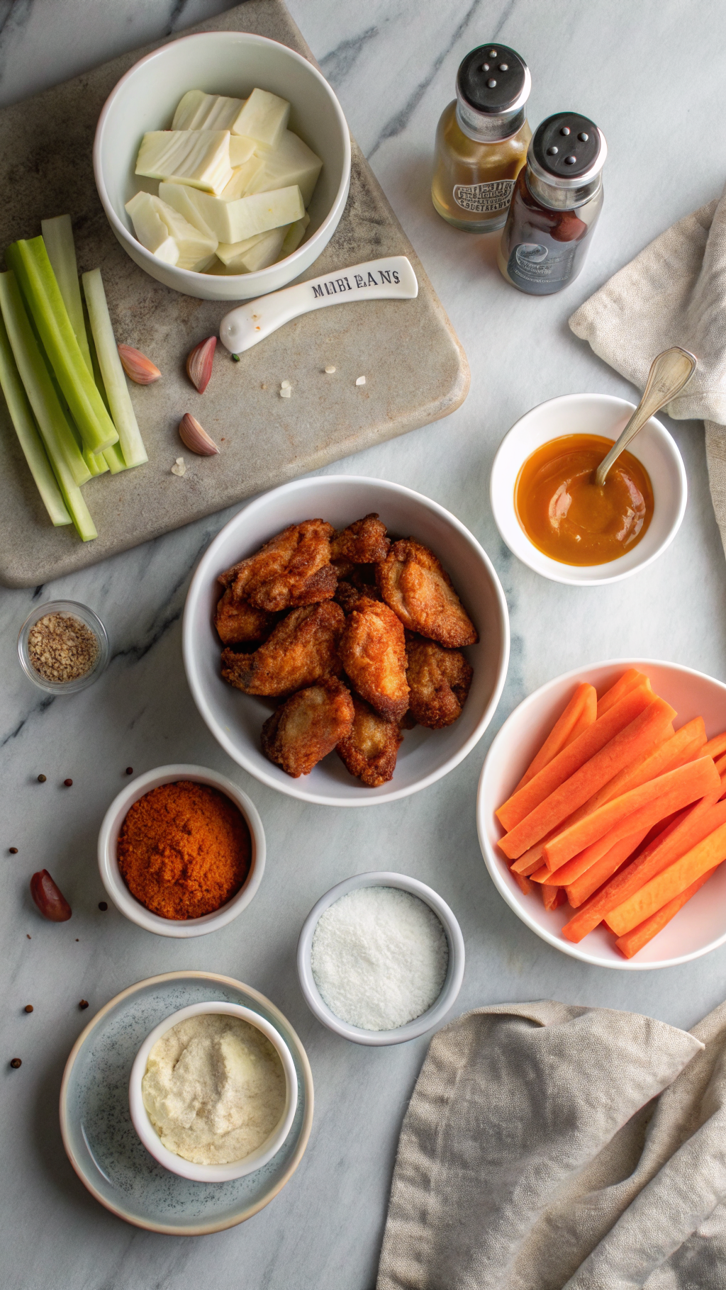 Sometimes I go extra spicy and stir in chopped pickled jalapeños and a little of their brine into the buffalo sauce. For a slightly lighter feel, I bake the wings on a rack and then finish them on a hot grill for a few minutes for a charred edge.