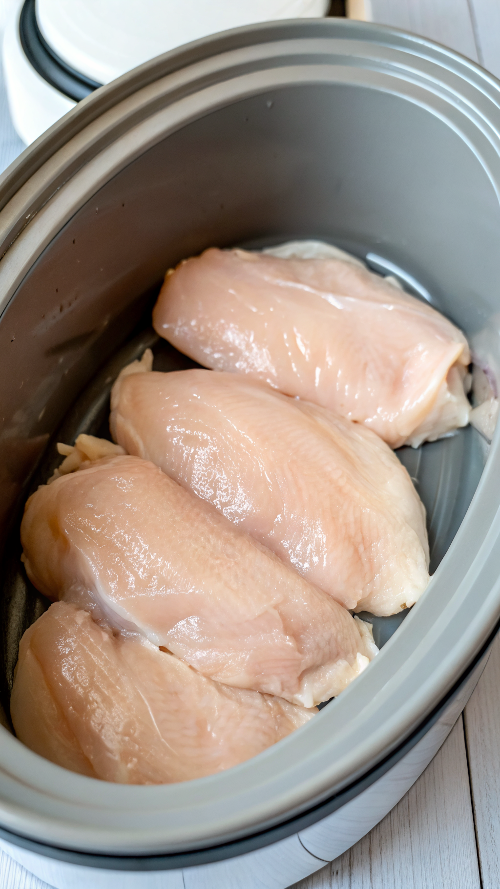 4. Cover and cook on LOW for 5–6 hours or on HIGH for 3–4 hours, until the chicken is cooked through and tender.