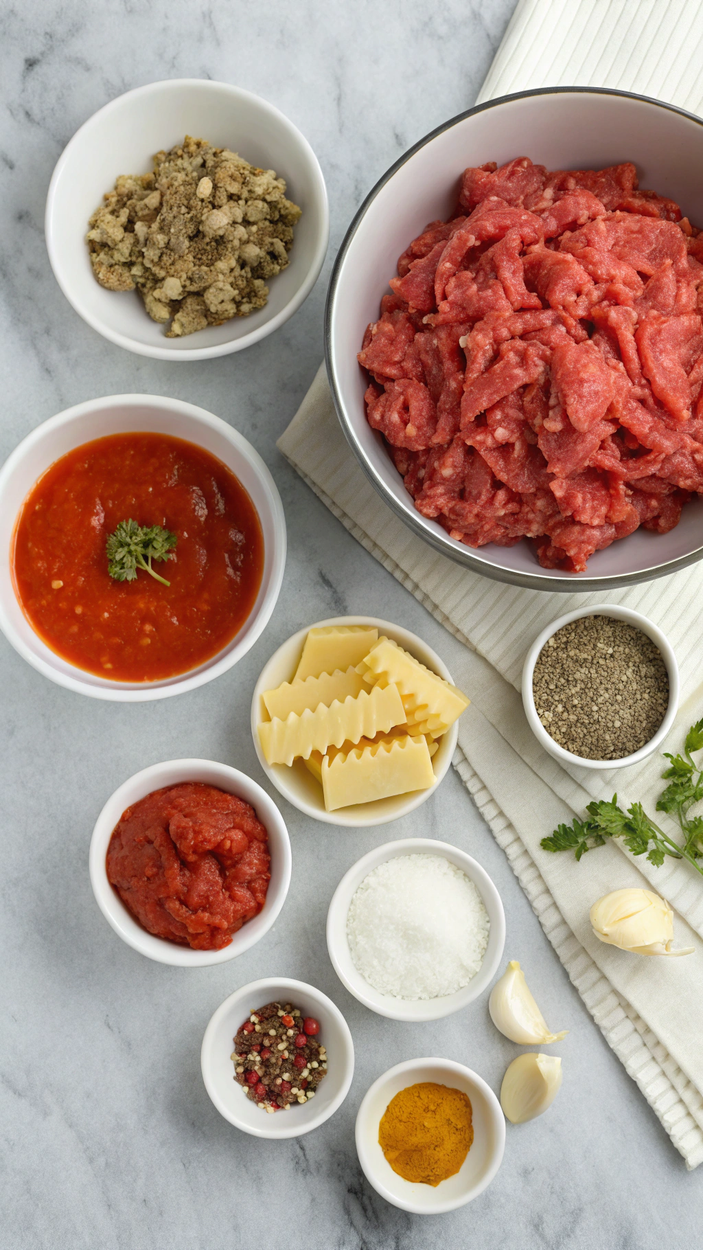 • 8 to 10 regular lasagna noodles, broken into bite-size pieces