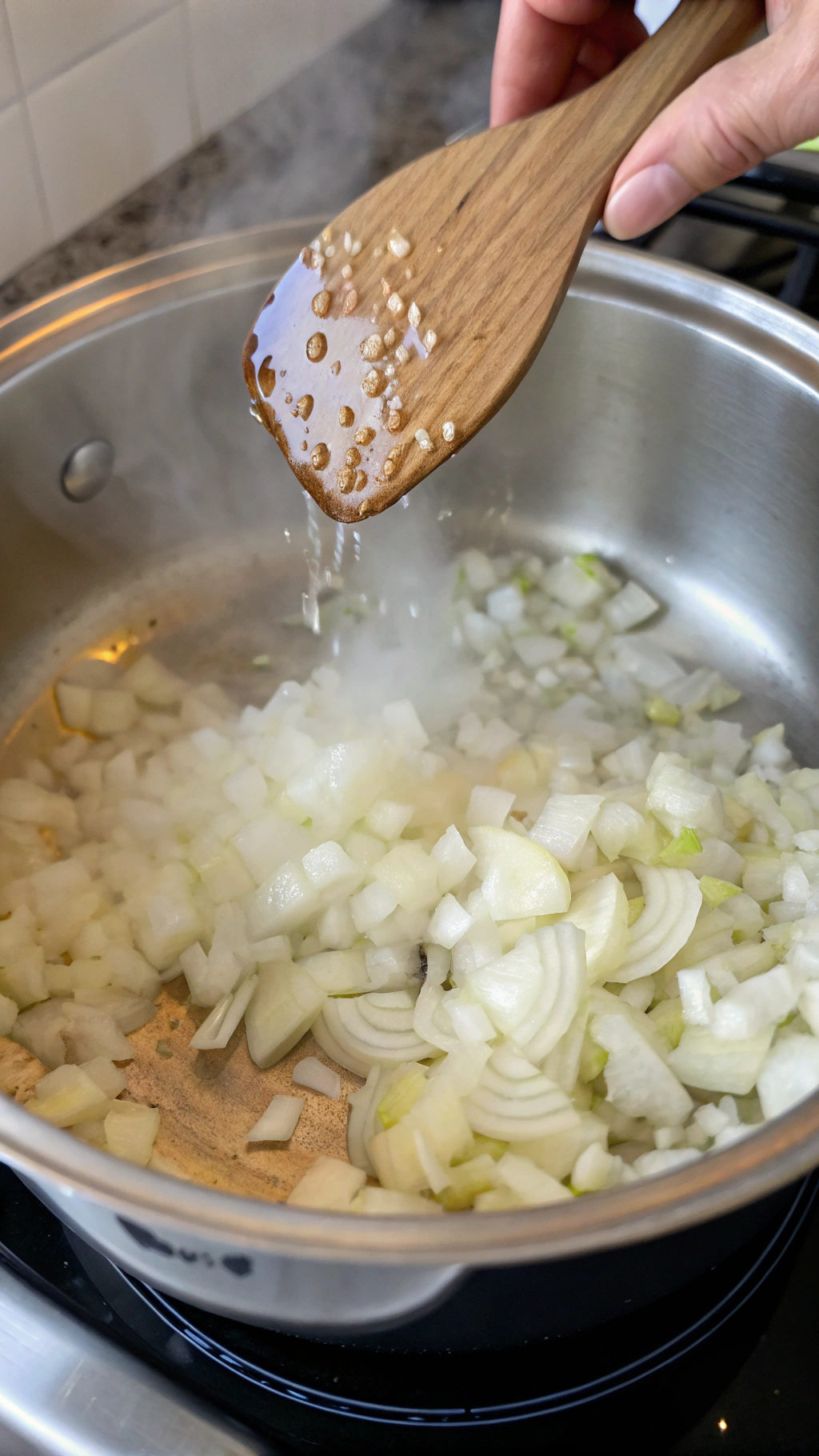 2. Add the diced onion and cook until softened, about 3–4 minutes. Stir in the minced garlic and cook for 30 seconds until fragrant.