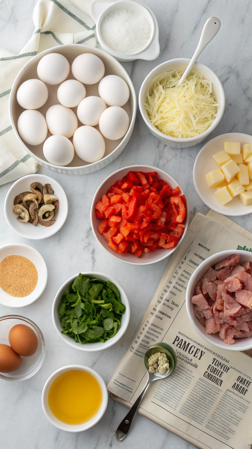 - Stir the egg mixture right before pouring so the cheese and fillings stay distributed.