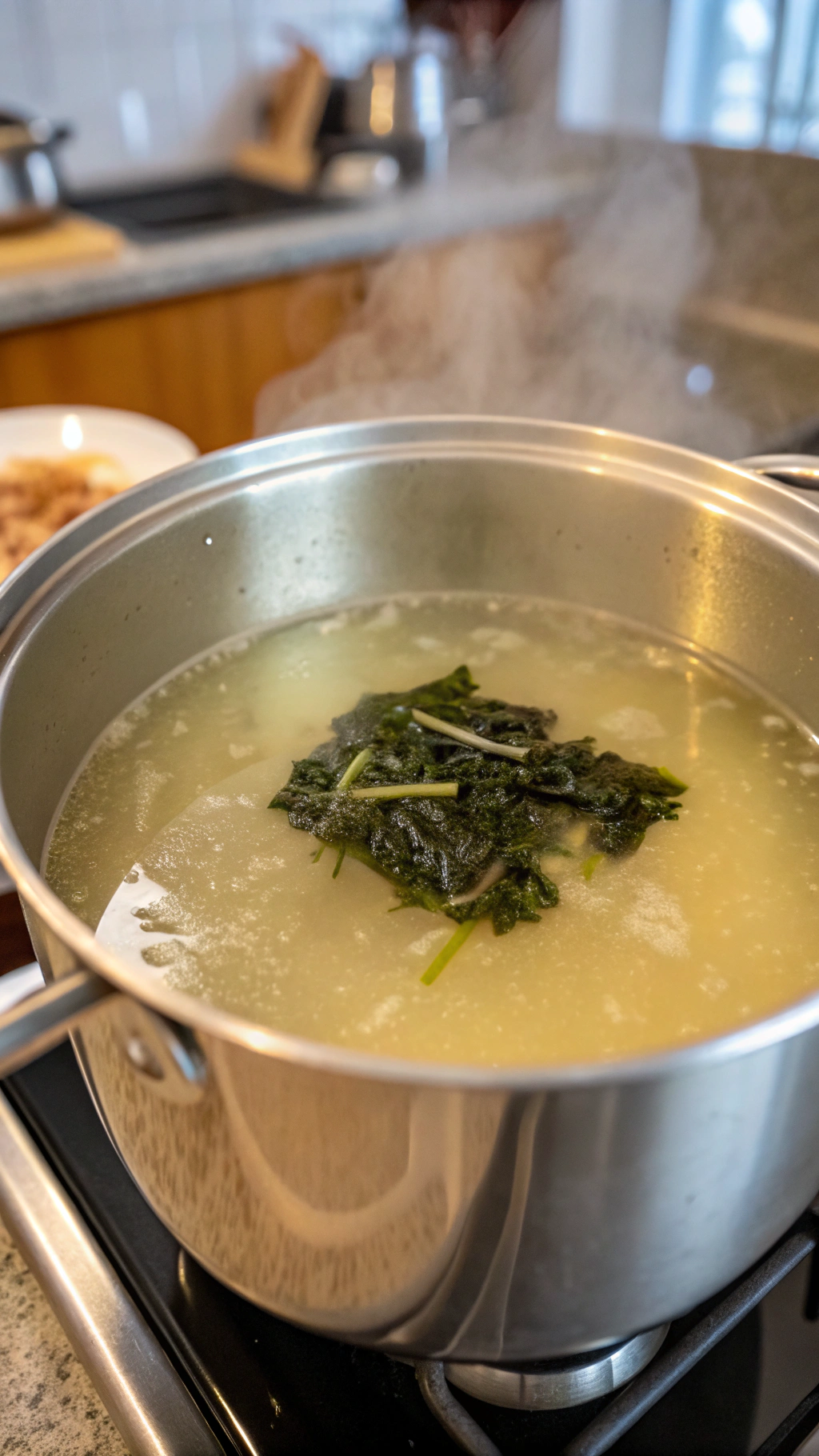 3: Add broth and seaweed