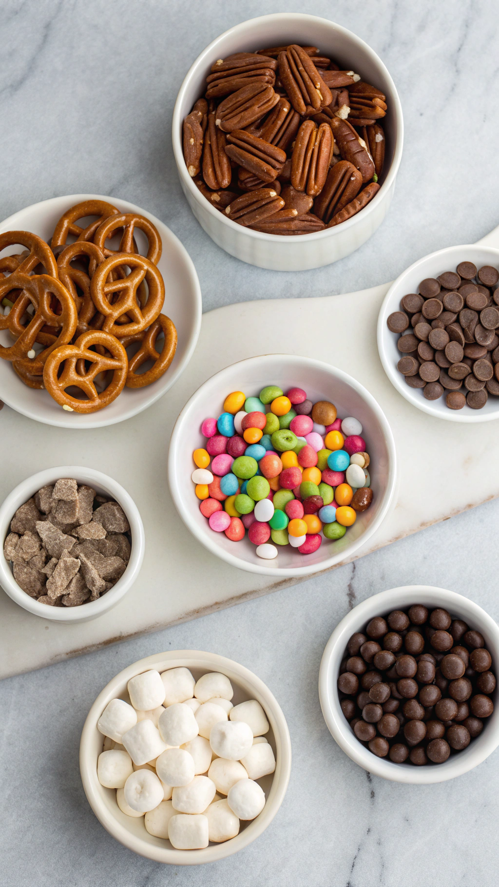 - Toppings: pecan halves for turtle-style, peanut halves, M&M’s, pretzel tops, mini marshmallows, or flaky sea salt.