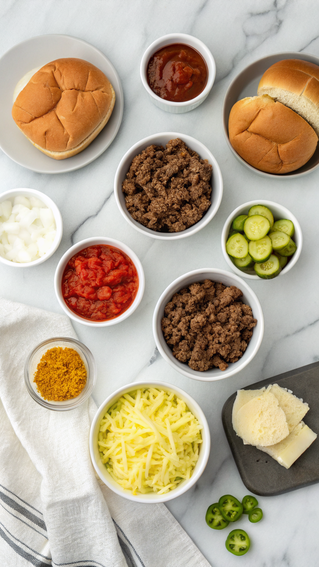 Scoop a generous spoonful of the Sloppy Joe Recipe filling onto the bottom half of each bun. Top with shredded cheddar or a slice of cheese if you like it melty and extra rich. Add pickles and sliced red onion for crunch and tang. Cap with the top bun and serve while hot and saucy.