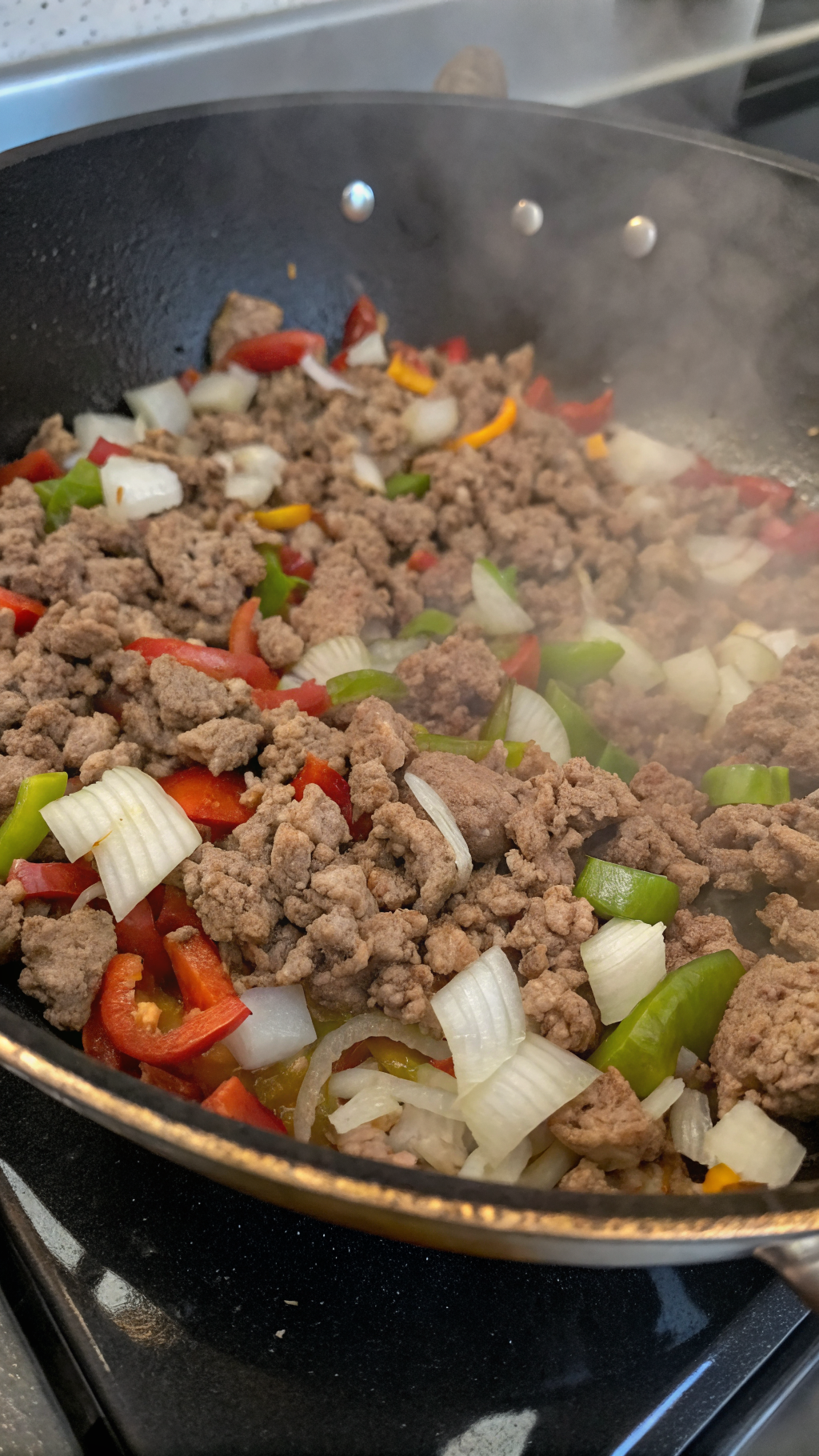 - Stir well so the spices coat the meat and onion mixture evenly.