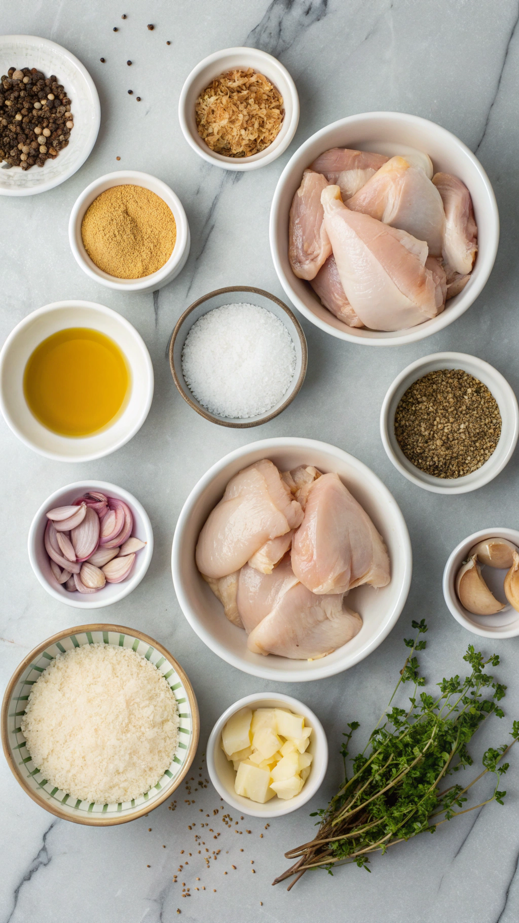 - Boneless thighs or chicken breasts also work; reduce cooking time a bit.