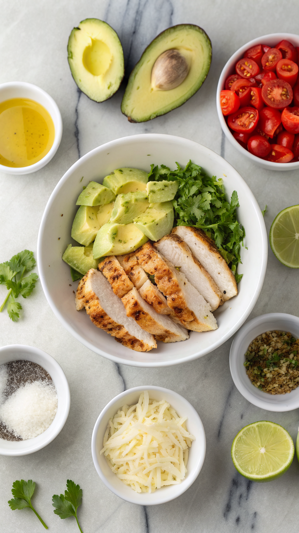 Taste and adjust seasoning with more lime or salt until the flavors feel bright and balanced. Cover the bowl with plastic wrap and press it lightly against the surface to slow browning. Keep the topping in the fridge until you serve the chicken.