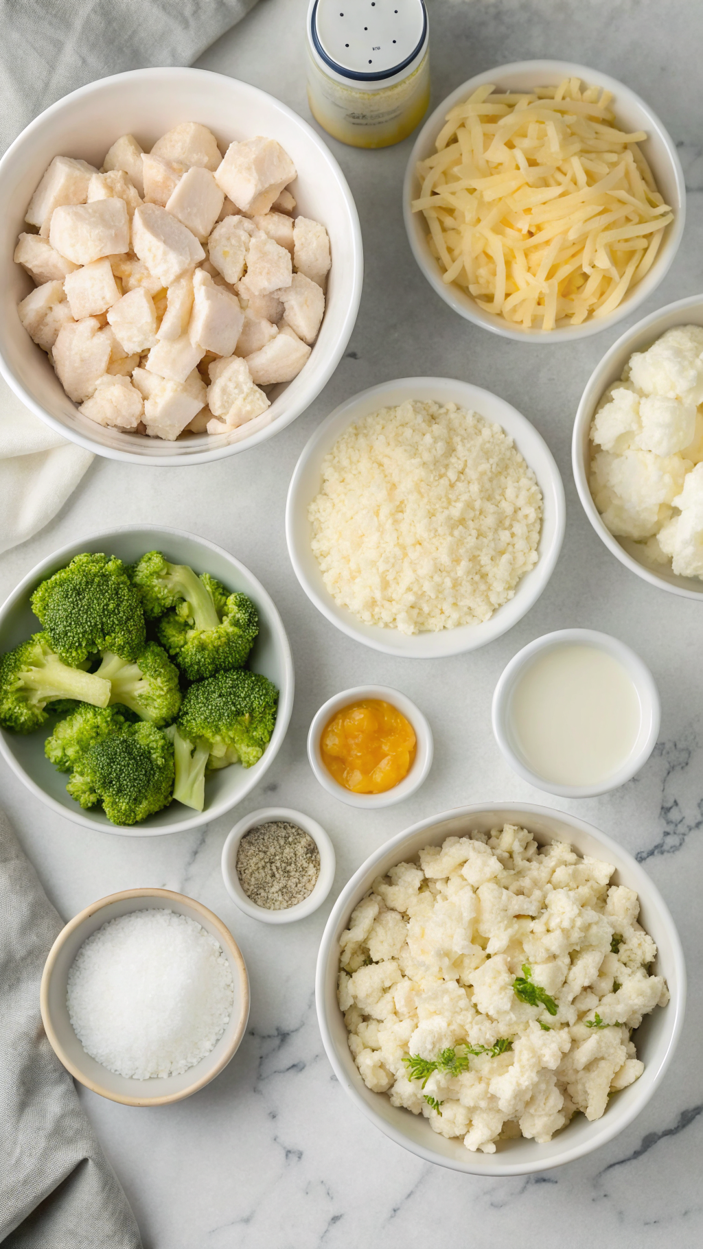 Preheat your oven to 375°F and grease a 9×13 inch baking dish with a little oil or cooking spray. If you use frozen cauliflower rice, thaw it in the microwave or in a skillet over medium heat. Pat it dry or squeeze out extra liquid with a clean towel so it does not water down the casserole.