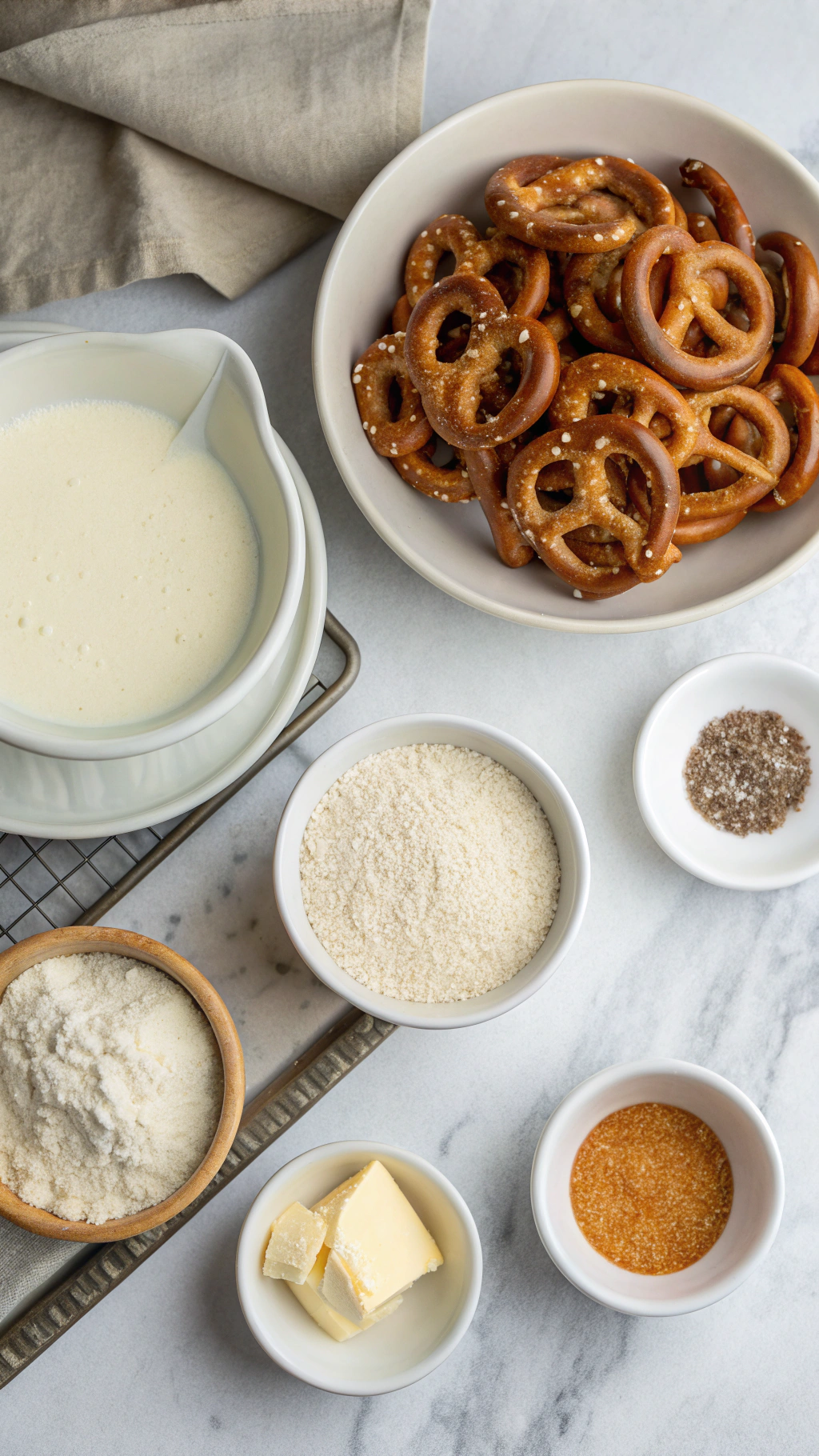 • Vegan: use plant butter, unsweetened oat or almond milk, and a meltable vegan cheddar. Brush pretzels with oat milk before baking.