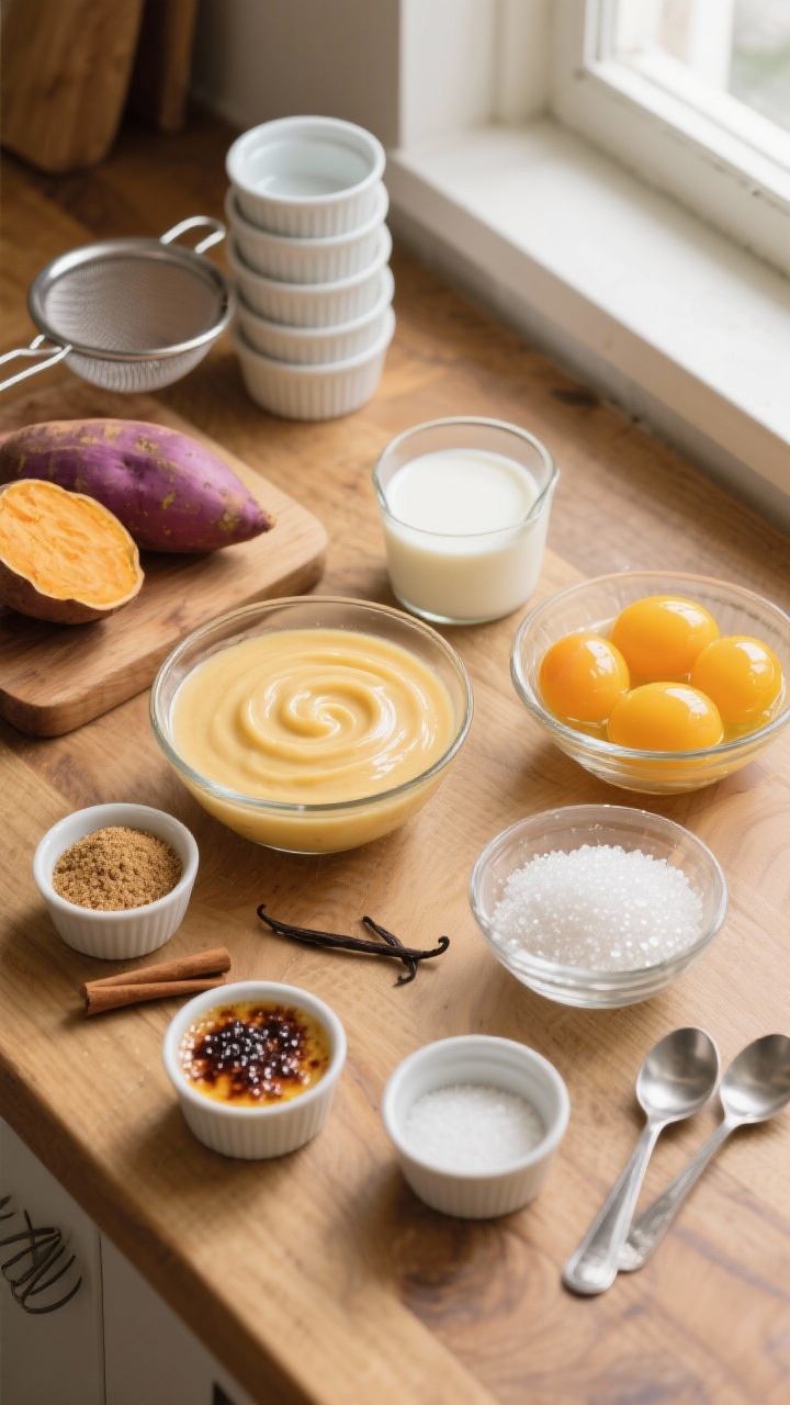 - Vegan: Swap yolks with 3 tablespoons cornstarch; simmer the dairy-free base 2–3 minutes until it coats a spoon, pour into ramekins, chill to set, then brulee.