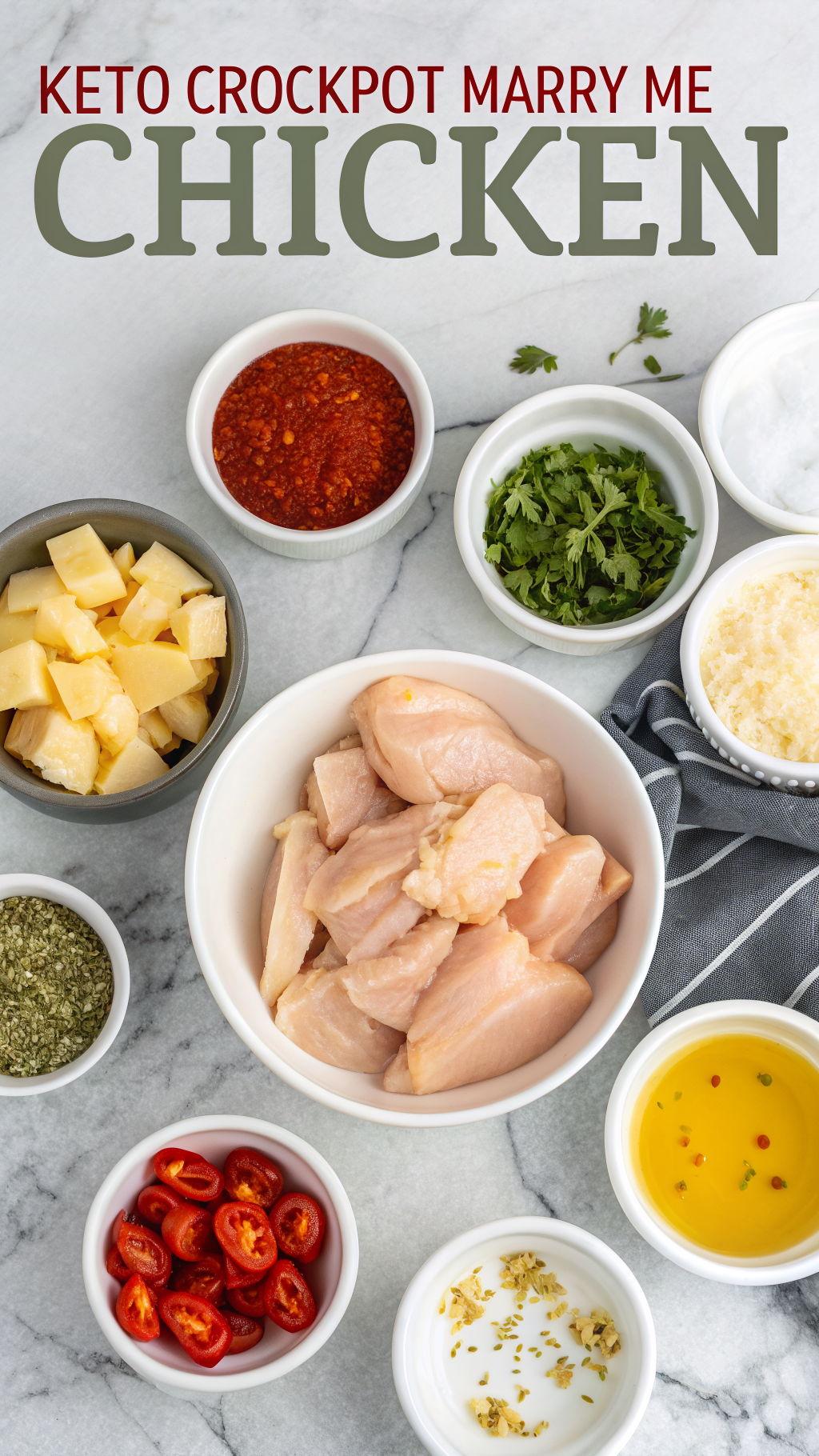 Here is everything you need for Keto Crockpot Marry Me Chicken Recipe. I include easy pantry shortcuts and swaps so you can use what you already have. Use a 4 to 6 quart slow cooker for best results.