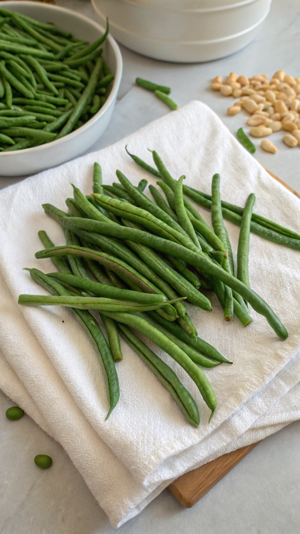 • Frozen whole green beans work in a pinch; thaw and pat dry first.