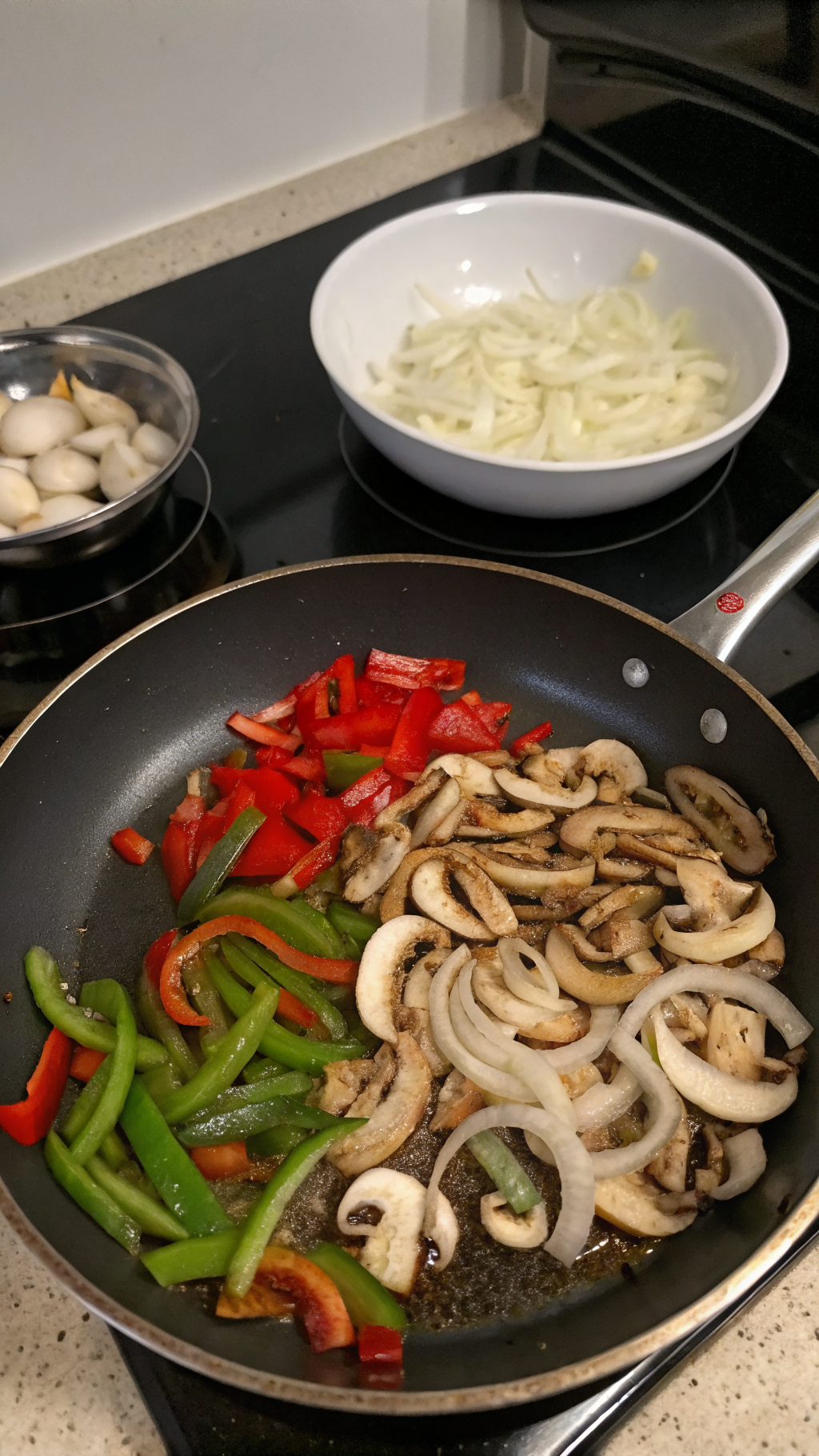 - Extra veggies: Add mushrooms, spinach, or zucchini slices; sauté them with the peppers and onions.