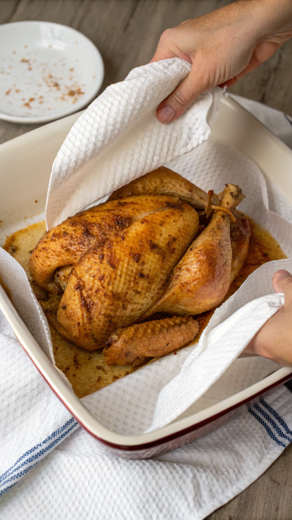 • Pat the chicken dry with paper towels so the marinade sticks and the skin crisps.