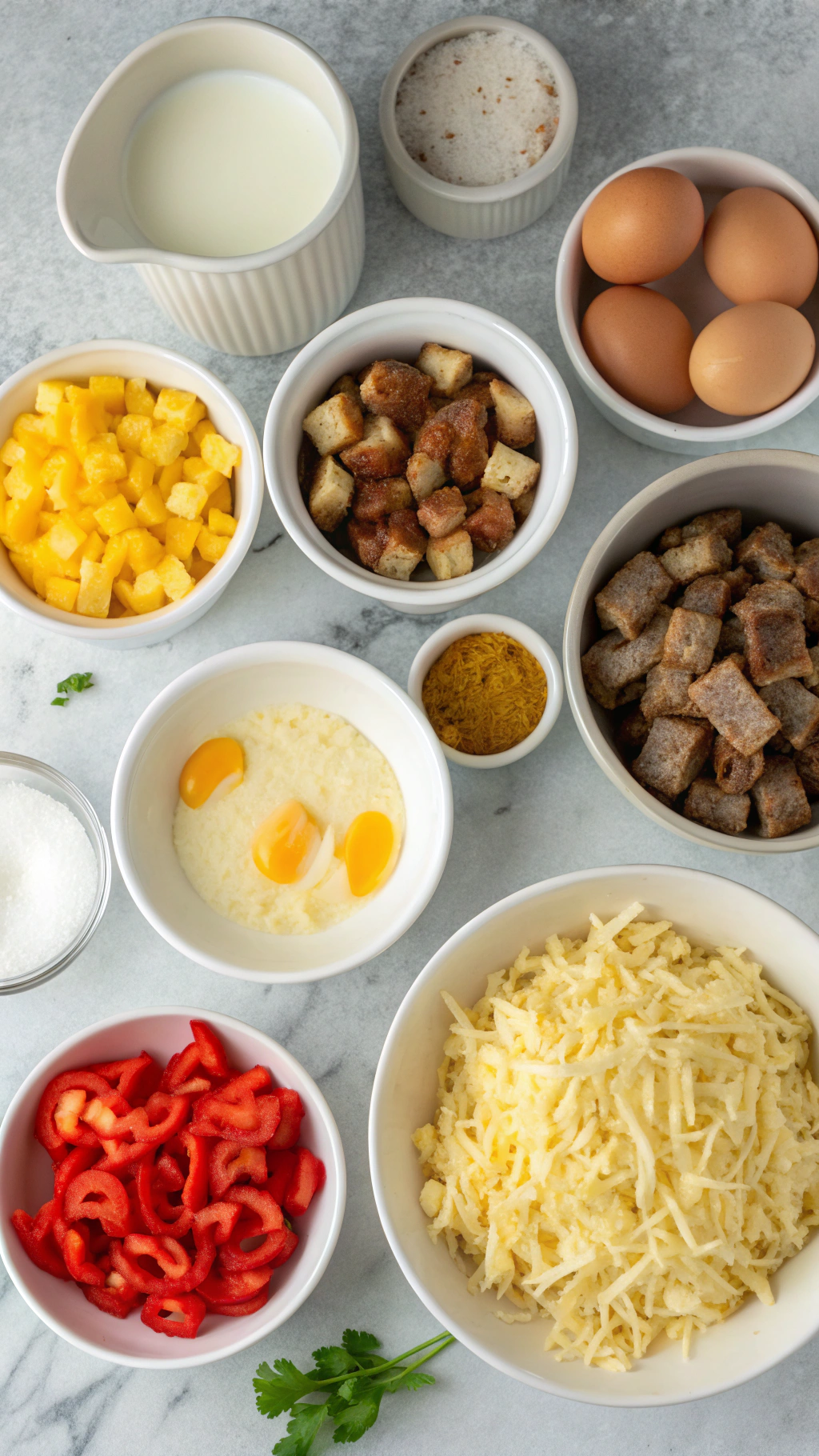 - Vegan: Swap in plant-based sausage, a liquid egg alternative, and dairy-free cheese. Use unsweetened plant milk.