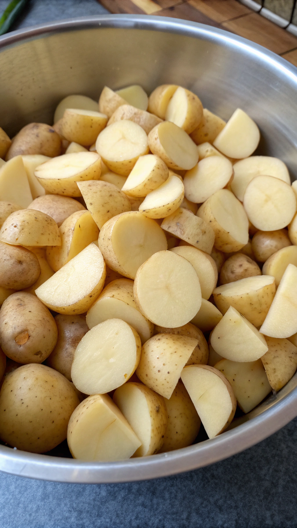 - Baby Yukon gold or red potatoes crisp nicely and hold shape.