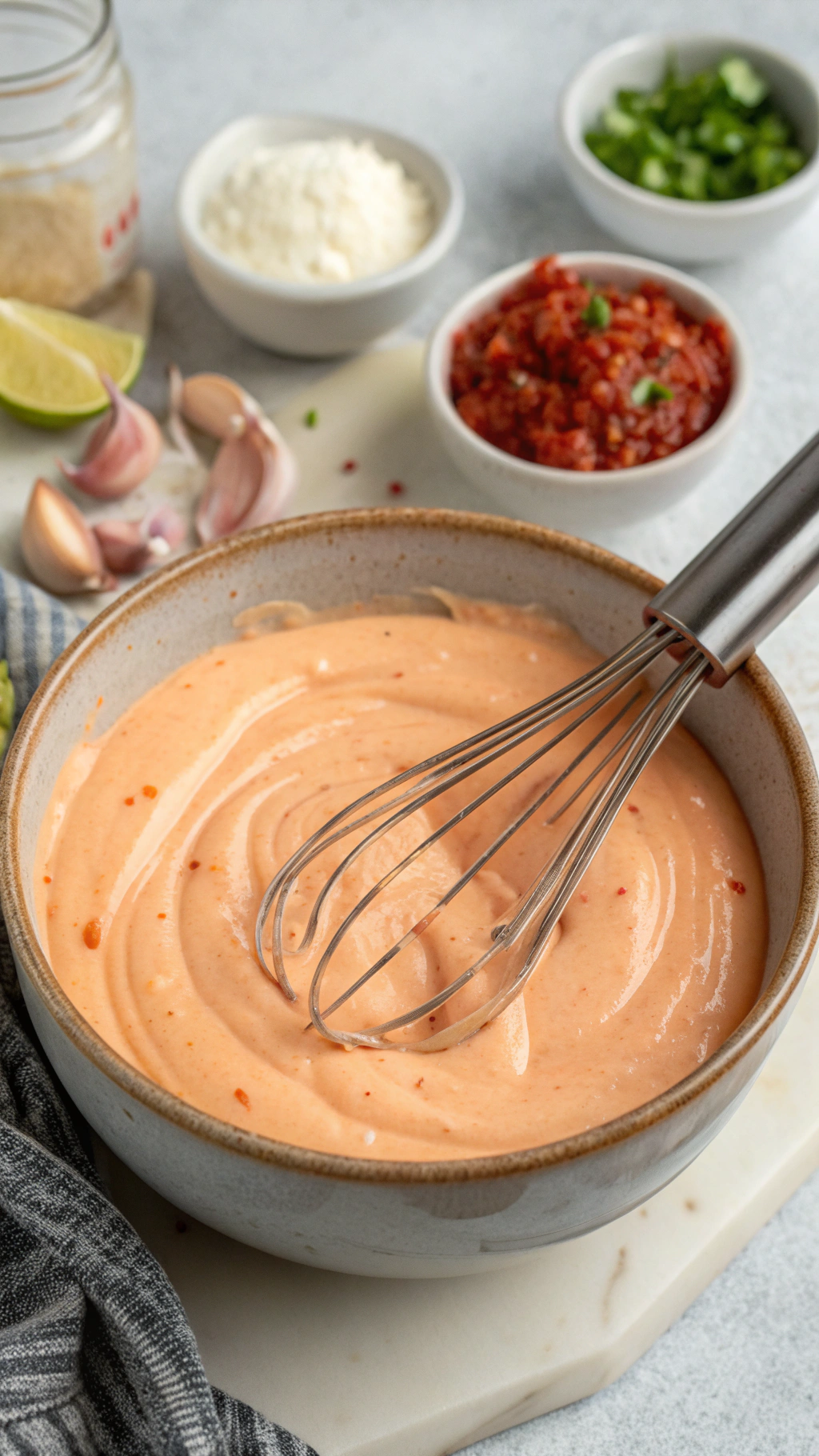 Add mayonnaise, sweet chili sauce, sriracha, honey, rice vinegar, soy sauce, and minced garlic to a small bowl. Whisk until the sauce turns smooth and creamy. Taste and adjust with more sriracha for heat, more honey for sweetness, or a pinch of salt if it needs a boost. Set the bowl near the stove so it waits for its big moment.