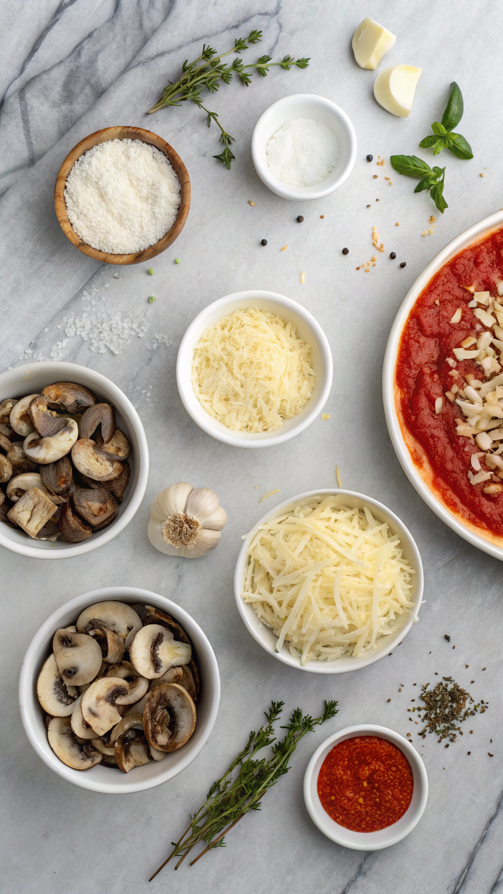 • Vegan: Use vegan mozzarella and skip Parmesan; sauté mushrooms in oil and add a drizzle of garlic oil after baking.
