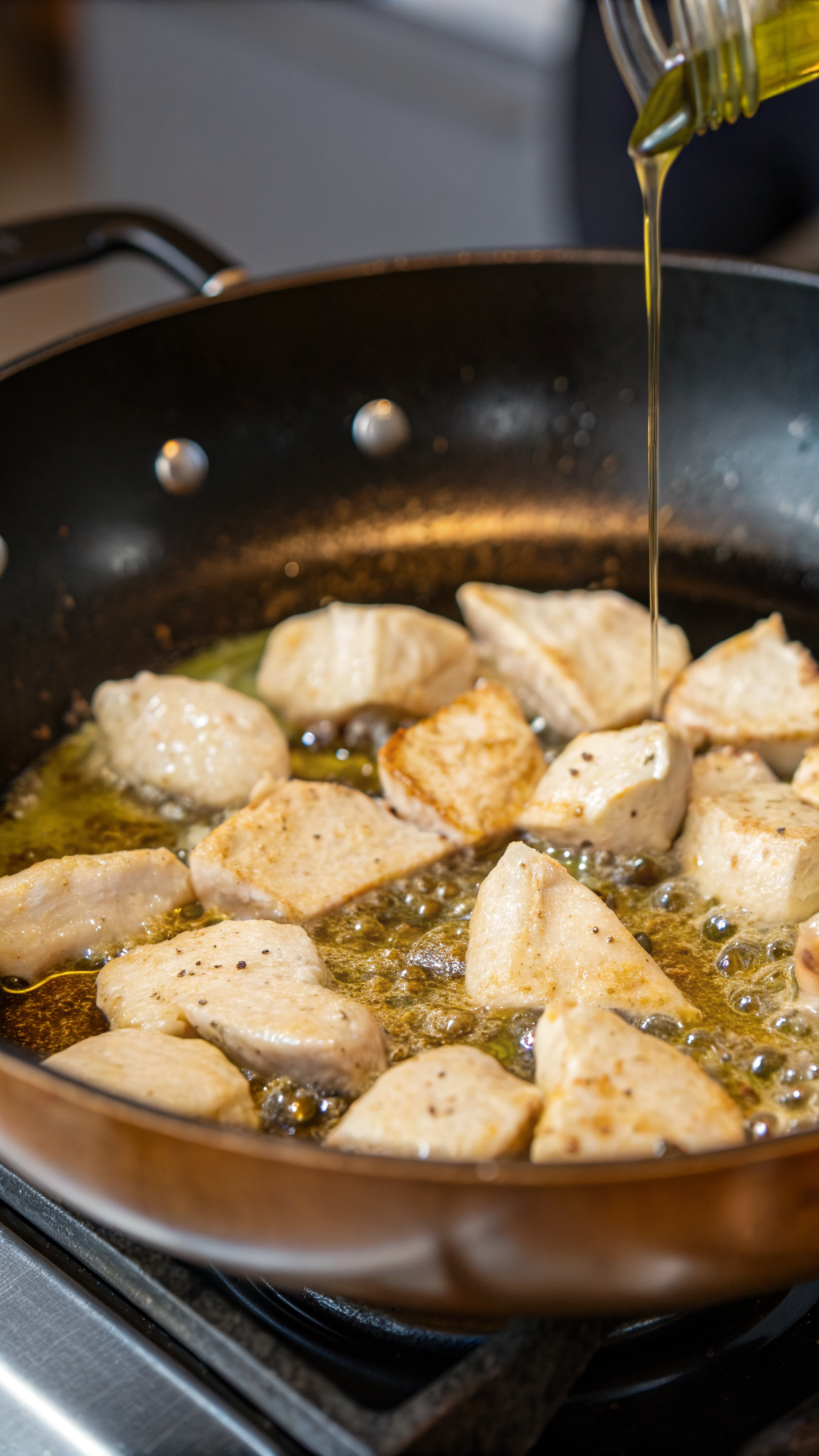 - Brown the chicken in a skillet with a little olive oil for 2 to 3 minutes per side to add deeper flavor.