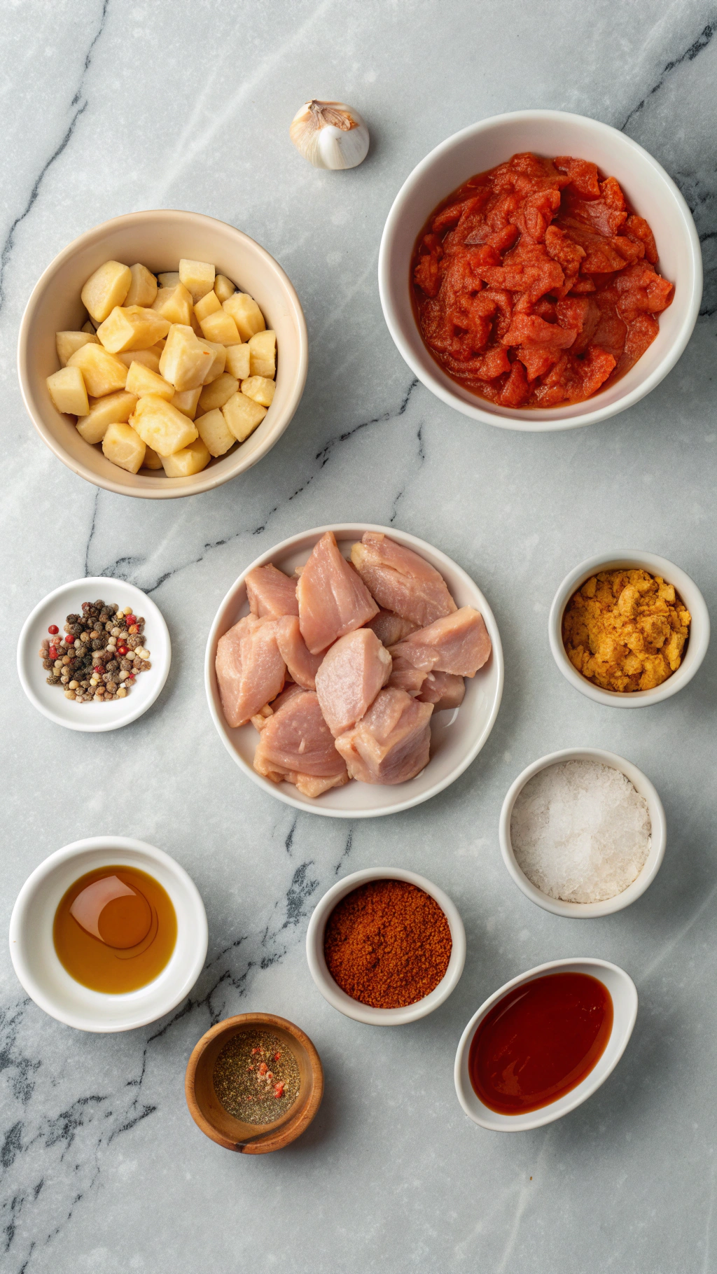 You control the heat level, the quality of the chicken, and how saucy you want it. Restaurant patatas bravas often lean heavy on oil and light on flavor, while this version loads the pan with garlic, smoked paprika, and tomato for a rich, clingy sauce.