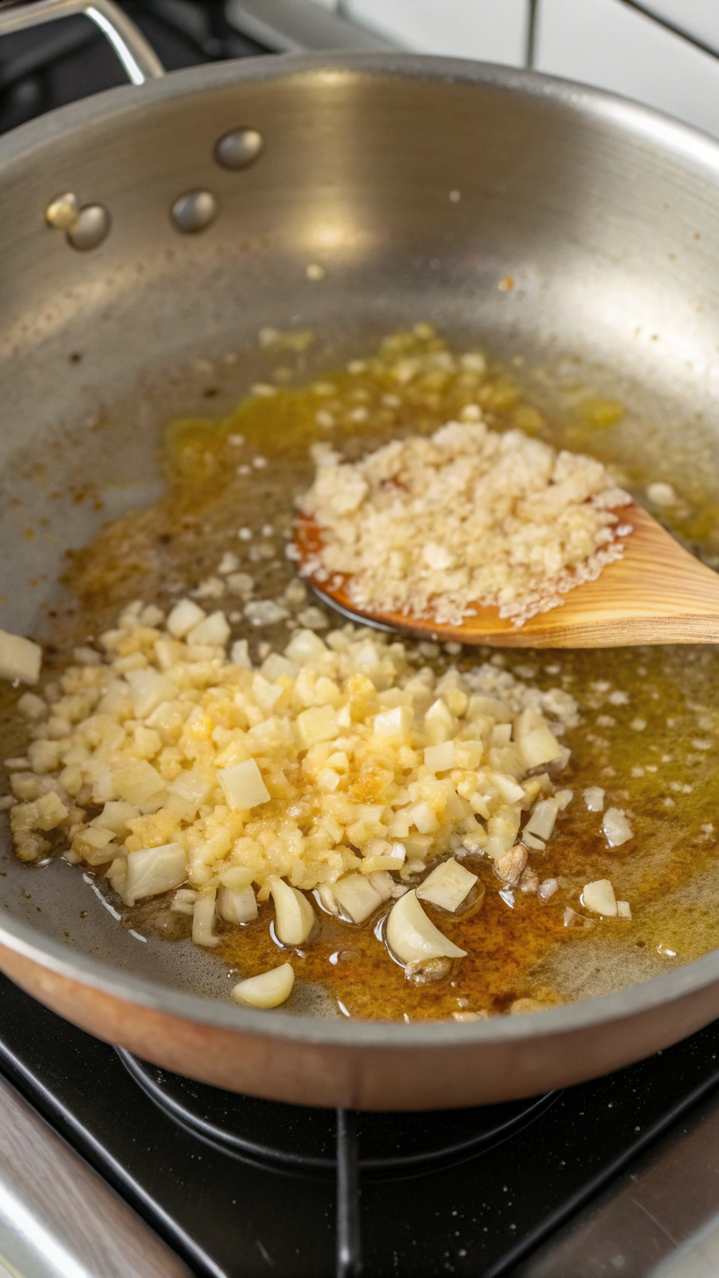 2. Stir in the minced garlic and ginger and cook for 1 minute until fragrant.