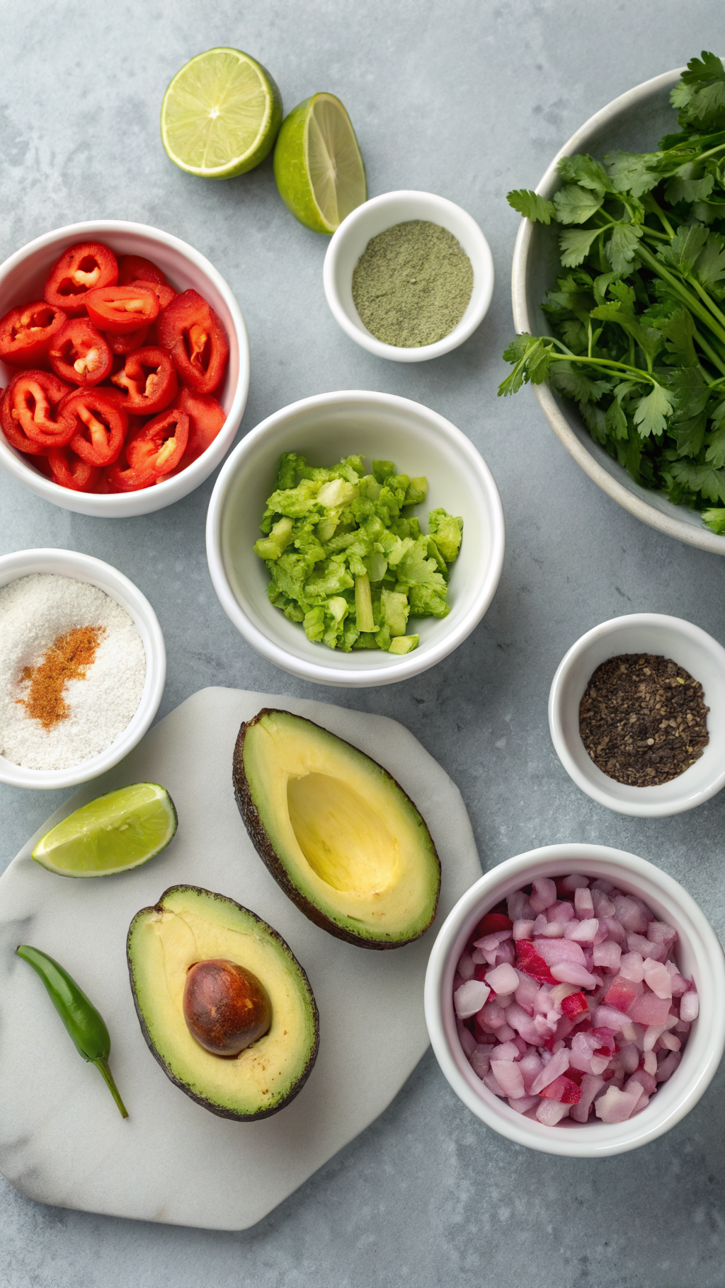 Cut the limes and squeeze the juice into a small bowl so you can control how much you add. Set everything near your mixing bowl so you work quickly once you cut the avocados. Quick work keeps the avocado bright and green.