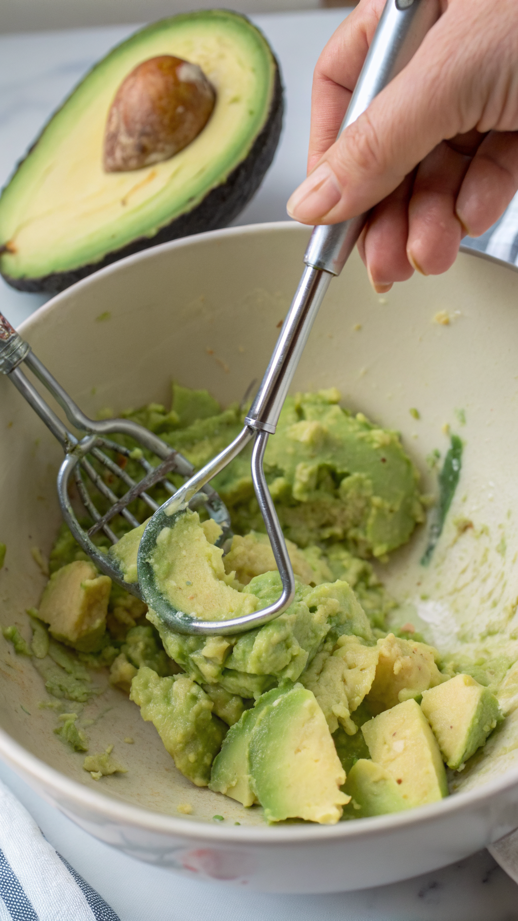 - Add lime juice right after you mash the avocado to slow browning and brighten flavor.