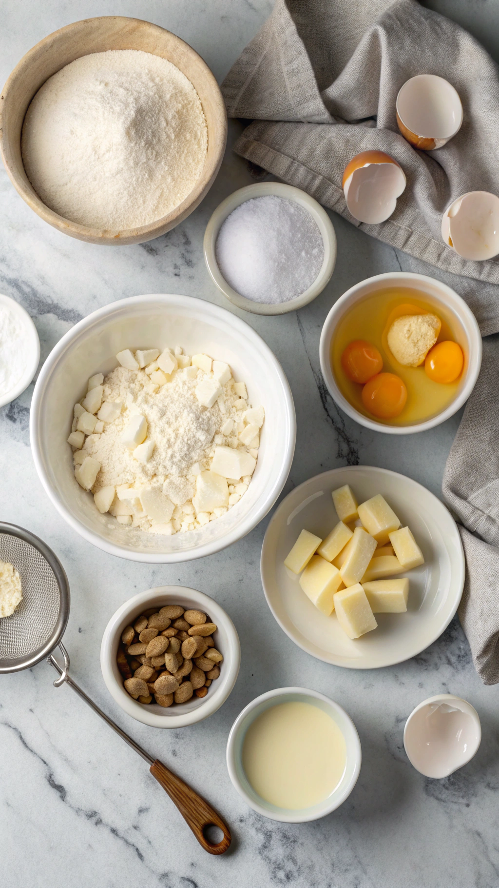 - All-purpose flour, 2 1/2 cups, spooned and leveled. A 1:1 gluten-free blend works; add 1 to 2 extra tablespoons if the dough feels sticky.