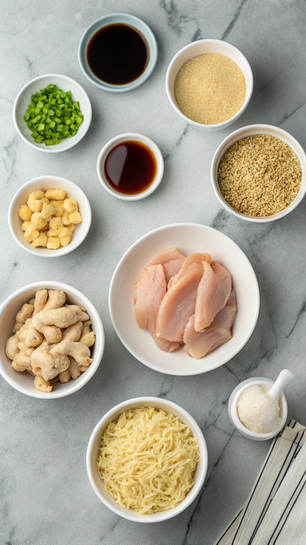 1. Pat the chicken thighs dry with paper towels and cut them into bite-size strips or cubes.
