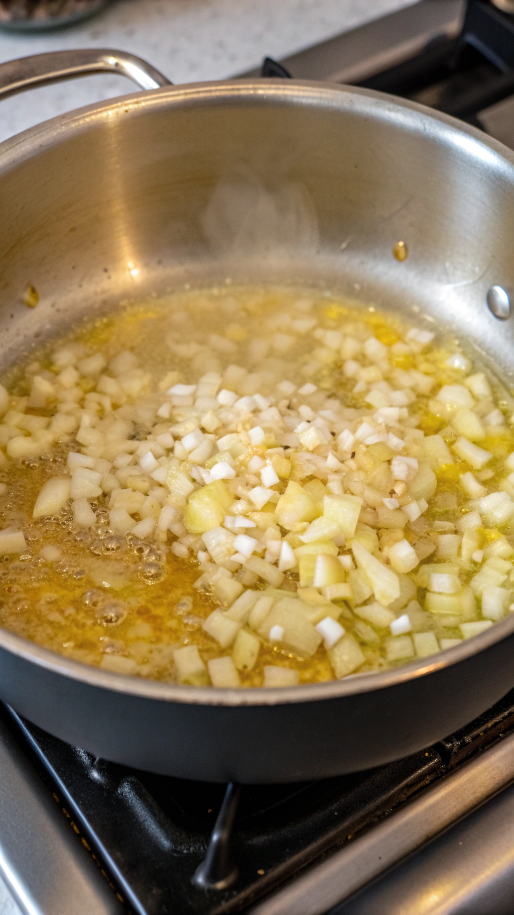 - Heat the vegetable oil in a large pot over medium heat. Add the chopped onion and cook for 3–4 minutes until softened and translucent.