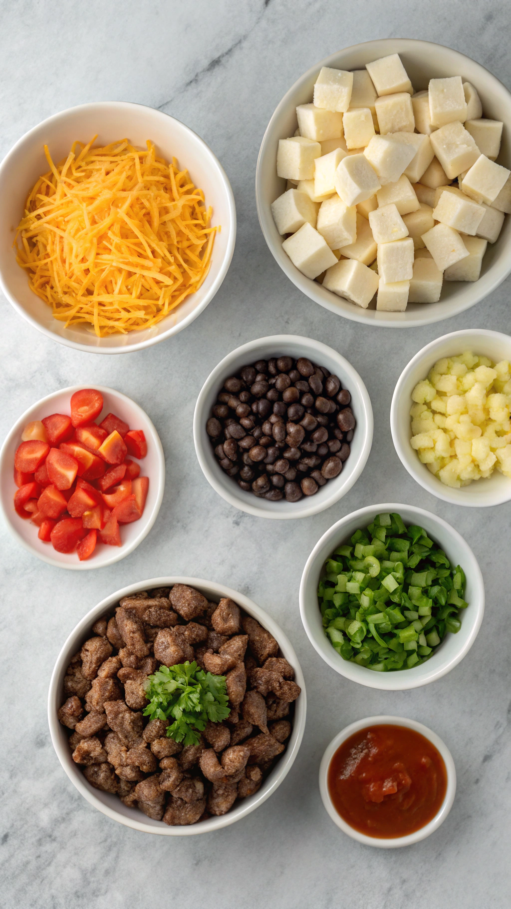 1. In a large skillet over medium heat, cook the ground beef and sausage until browned, breaking it apart as it cooks. Drain excess fat.