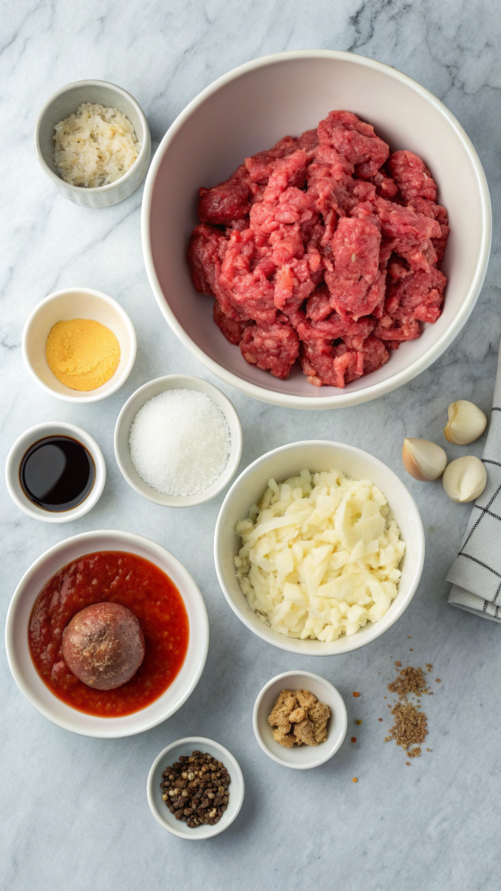 • 1 pound ground beef, 80/20 for best flavor and moisture