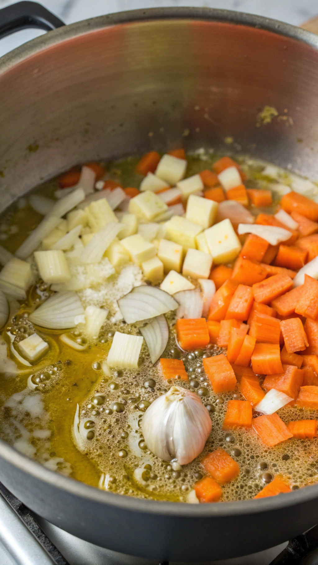 • Sauté the onions and carrots until they turn soft and lightly golden, since that step builds deep flavor.