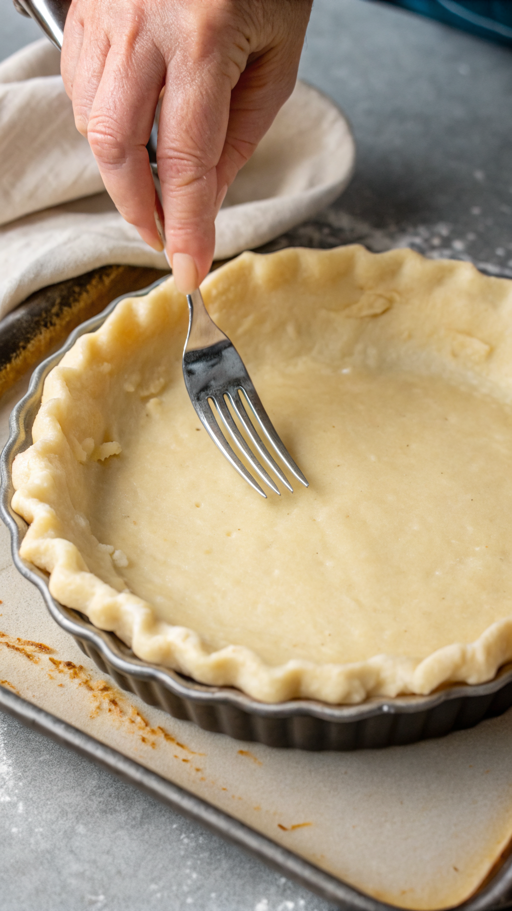 If you want a sturdier crust, you can blind bake it. Line the crust with parchment, fill with pie weights or dry beans, bake 10 minutes, then remove the weights and cool slightly.