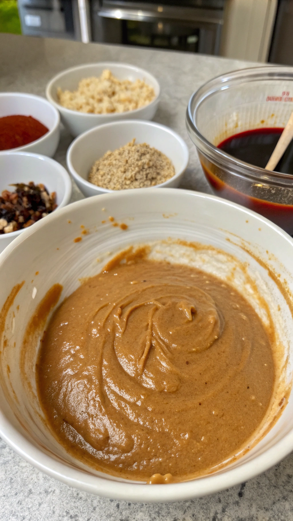 • Whisk the peanut sauce in a separate bowl until smooth, then thin it with warm water or coconut milk as needed.