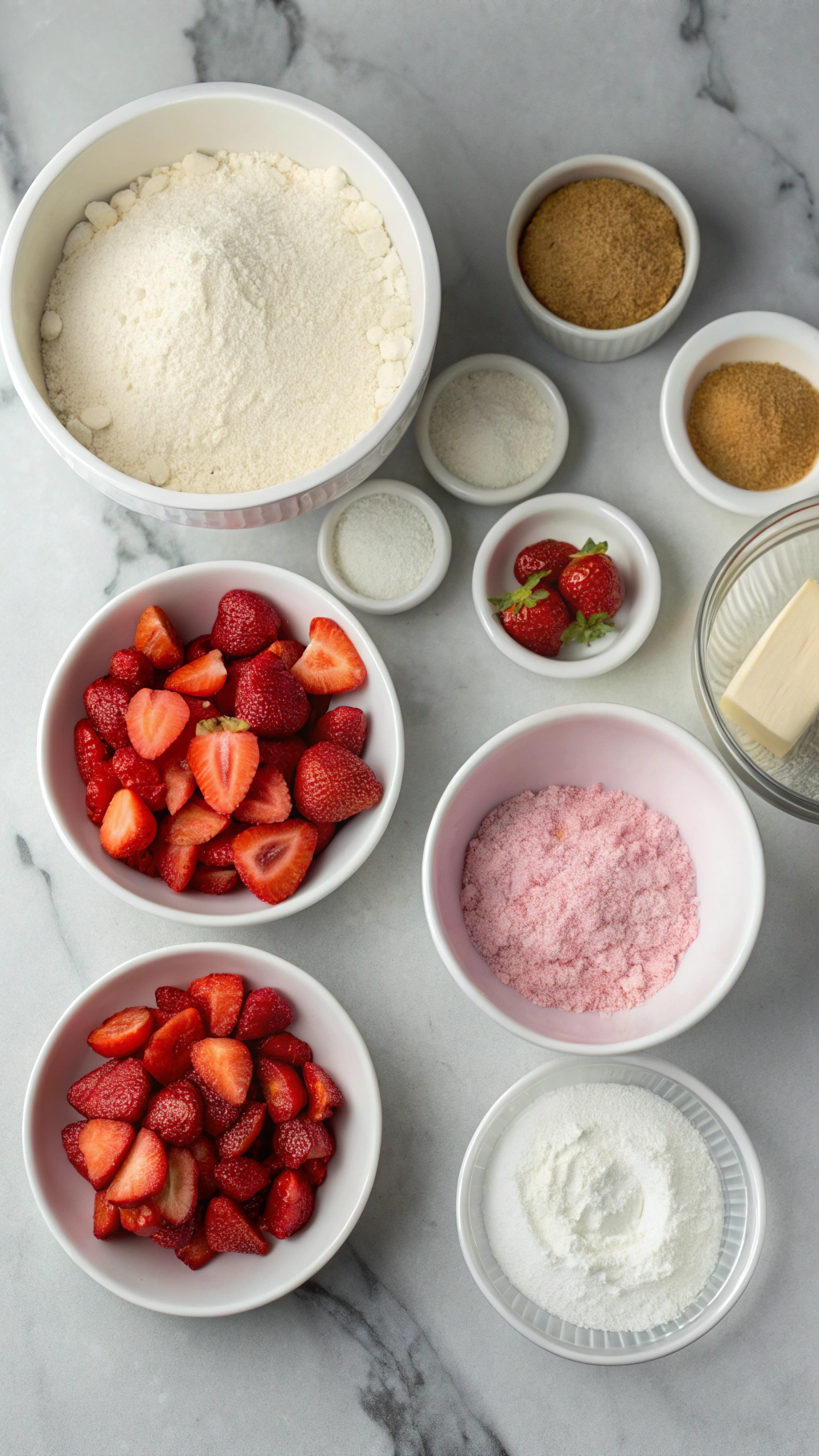 • 1/2 cup freeze-dried strawberries, finely crushed