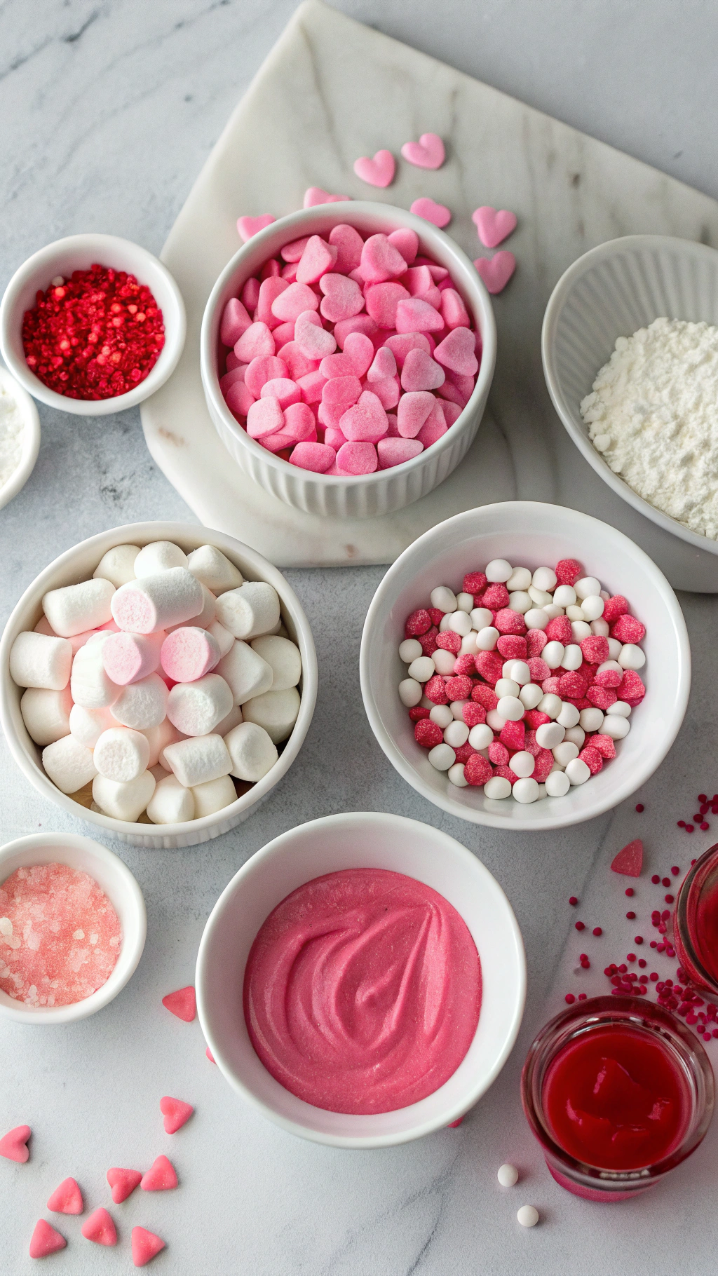 - Large marshmallows or gummy hearts: 10 to 12 pieces for flower centers. I like heart gummies for a Valentine vibe.